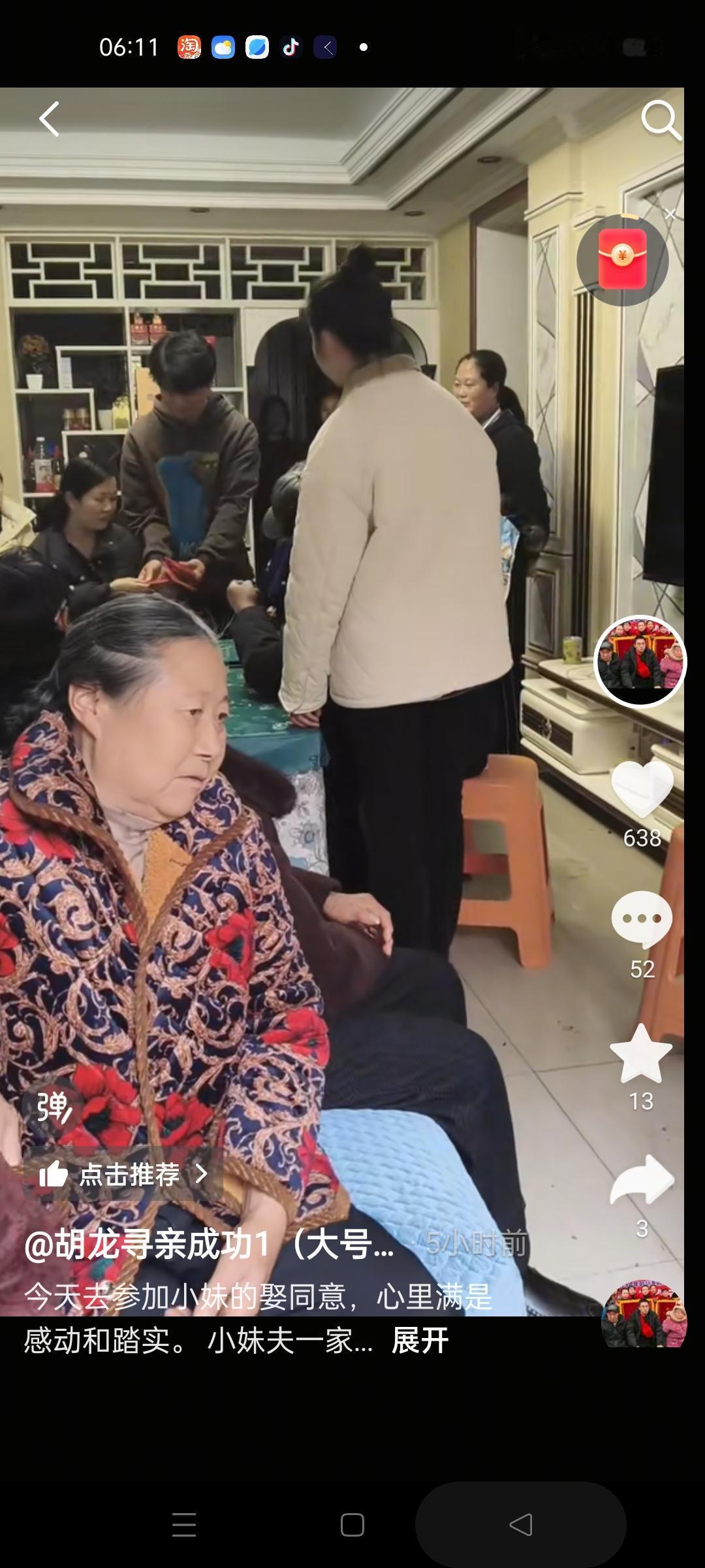 胡龙家昨天也算是个大喜日子,小妹和小妹夫两家见面,看来小妹的男朋友家庭条件还不错,居住环境挺好的,宽敞的大房子,装饰的也比较上档次,据说小妹的男朋友是少数民族,他们昨天的见面活动还给到场的每个人发了红包。胡龙也开心的给大家炫耀他得到的红包,祝福胡龙也能接好运,早日实现财富自由,娶上媳妇。贵州胡龙认亲 贵州胡龙