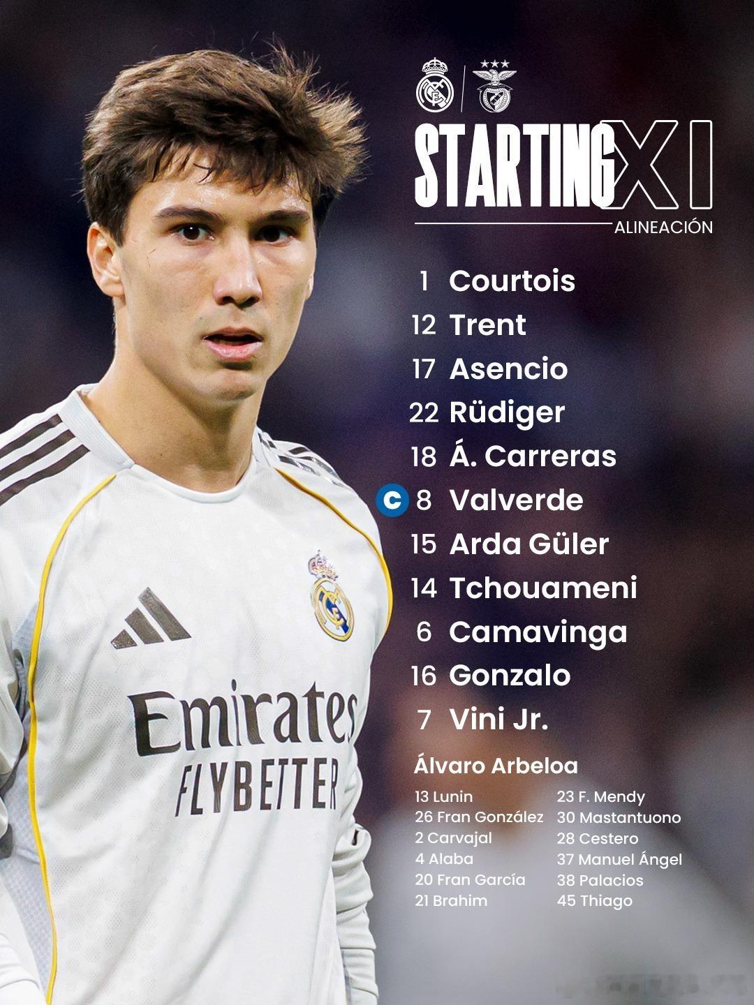 皇马vs本菲卡 首发阵容⬇️