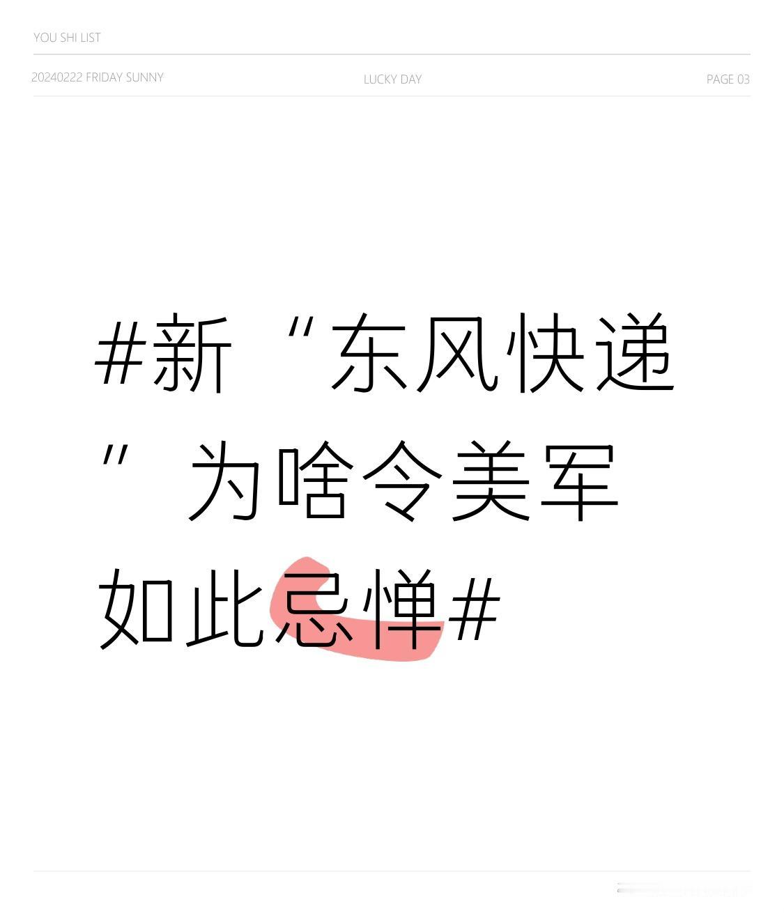 新“东风快递”为啥令美军如此忌惮 新“东风快递”让美军忌惮,原因很简单,它在技术上实现了巨大突破,打破了现代战争的攻防平衡。 新一代东风导弹速度极快,末端突防速度能达10 - 20马赫,从发射到命中远程目标只需十几二十分钟。美军反导系统针对传统抛物线导弹设计,面对东风导弹,根本来不及反应。 而且,东风导弹轨迹多变,采用钱学森弹道,像“打水漂”一样全向机动,雷达难以算出其下一步去向,反导系统无法锁定目标。美军多次推演显示,现有反导系统对其拦截成功率几乎为零。此外,东风的反舰型号还能精准打击美军核心资产,美军能不忌惮吗?
