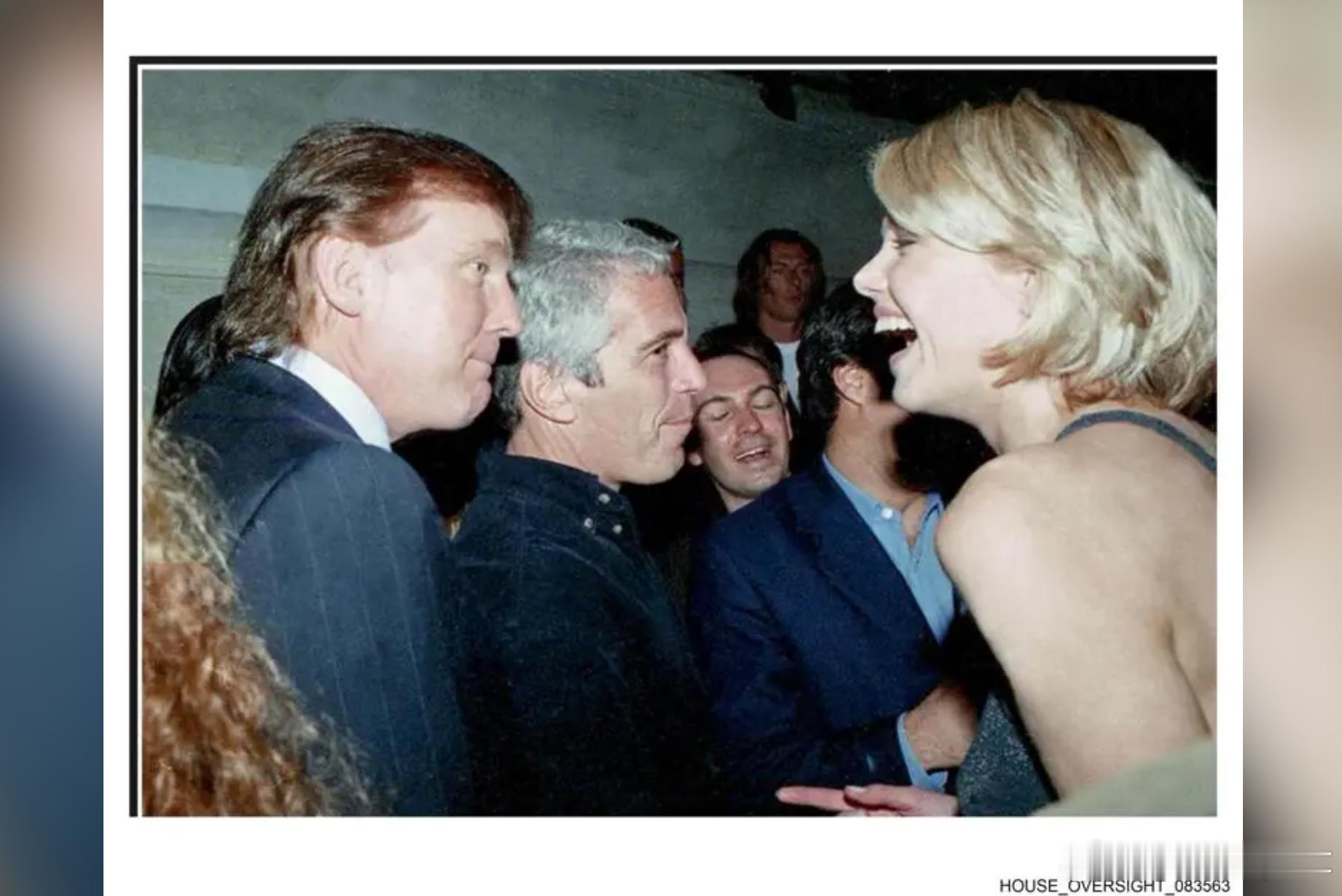 图:美国众议院监督委员会去年12月公布一张特朗普(左)与爱泼斯坦(中)在多年前的一张照片。法新社