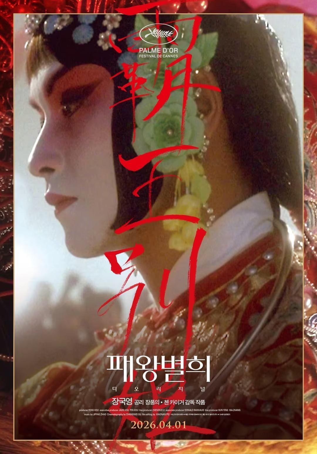 张国荣、巩俐、张丰毅领衔主演的171分钟文艺片《霸王别姬 /패왕별희》于04月01日韩国再映,此为该影片33周年纪念。