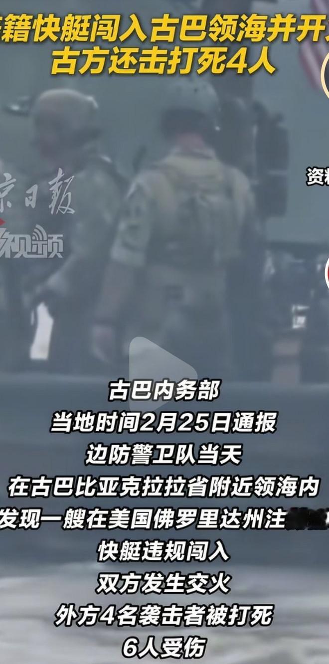 古巴人比很多大国都强,敢于硬刚美国。美国快艇驶入古巴领海,公开挑衅古巴,还敢率先开火。古巴军人奋起反击,造成快艇四死六伤。古巴人是真勇敢,保护了领海,维护了民族尊严,至少比委内瑞拉强。 美国以为他可以拿捏所有的国家,就是没把古巴放在眼里,认为古巴只能任人宰,即使侵犯了领海也不敢还击。低估了古巴人维护国家尊严的决心意志。 人不犯我,我不犯人,人若犯我,我必犯人。朋友来了有美酒,豺狼来了有猎枪。敢于开枪,是真正的军人。好样的,给你点赞。