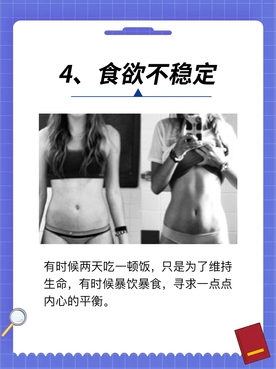 第7名:食欲突变 要么完全吃不下,瘦得很快;要么暴饮暴食,停不下来