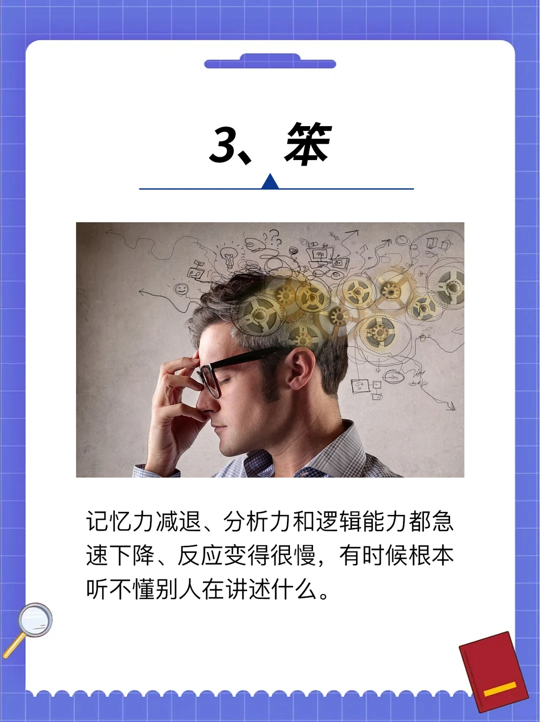 第4名:反应变慢 别人说话听不进去,脑子像生了锈,记性差到怀疑人生