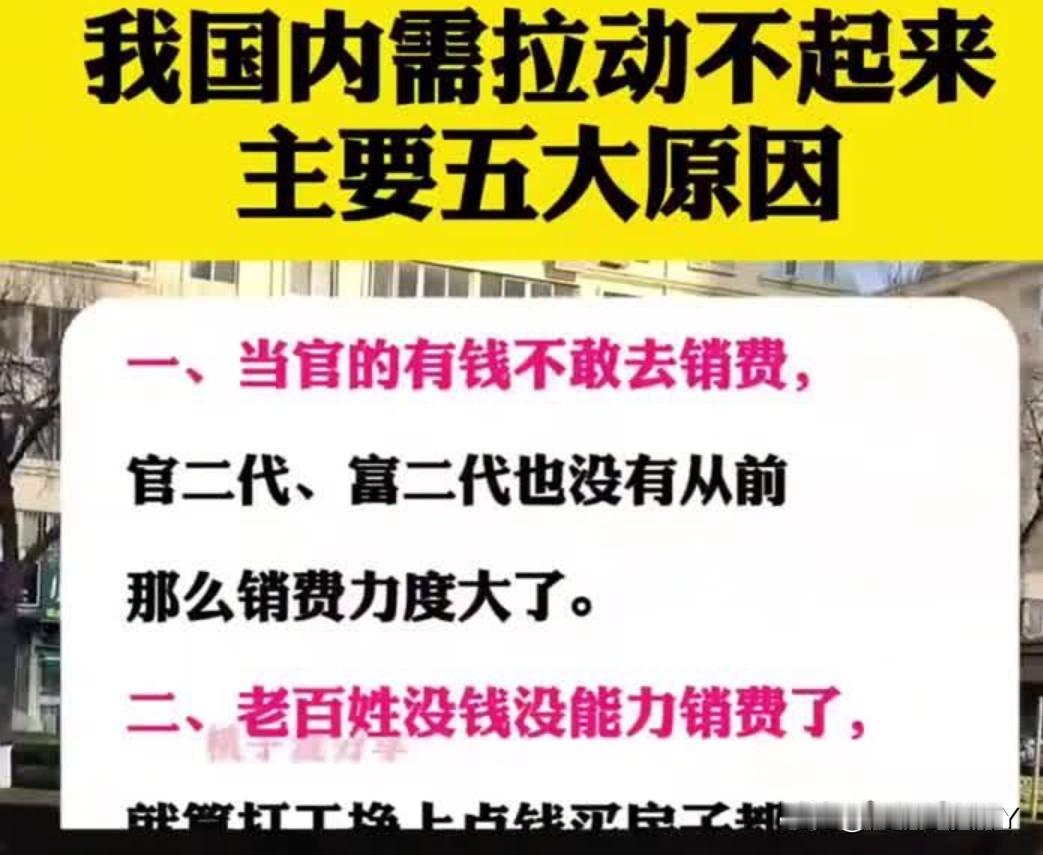 难道除了房地产就拉不动消费了吗?居民“不敢花、不愿花、不能花”原因何在? 一、不敢花:预期不稳+风险兜底不足 - 就业与收入预期弱:青年失业率高、35岁职场焦虑、灵活就业占比高(约38%)、收入增速放缓,怕失业、怕降薪 - 预防性储蓄刚性强:养老(替代率仅45%)、医疗(大病自费高)、教育(支出占比高)三大压力,必须存钱防风险 - 资产负债表压力:房产占家庭财富大头,房价调整带来财富缩水;房贷挤压现金流 二、不愿花:观念转变+信心不足 - 消费观念理性化:从“炫耀消费”转向“性价比优先”,年轻人“无债一身轻”,延迟满足 - 信心持续低迷:对经济前景、收入增长、就业稳定信心不足,倾向“捂紧钱包” - 供给匹配度低:优质消费供给不足,部分领域消费环境、服务体验差 三、不能花:收入约束+成本挤压 - 收入增长乏力:居民收入增速与GDP同步但整体放缓,中低收入群体购买力弱 - 分配差距大:基尼系数偏高,高收入群体边际消费倾向低,中低收入群体“想花没钱” - 刚性成本太高:住房、教育、医疗“三座大山”挤压可选消费;房贷、育儿、养老占比高 - 财产性收入少:居民财产性收入占比仅约10%,低于发达国家,财富增值渠道有限 不敢花是怕未来风险、不愿花是信心与观念、不能花是收入与成本;三者叠加,形成“少花—多存—消费弱”的循环。 四、为什么大家觉得“除了房地产没别的”? 因为过去20年,房地产链条太长、带动太强: 买房 → 装修、家电、家具、建材、水泥钢铁、物业、租赁、金融… 一业动,百业跟。 但现在: - 房子够住了 - 居民杠杆满了 - 房价预期变了 再靠老路子,带不动、不敢带、也带不久。 五、真正能长期拉动内需的,根本不是房子 是这5大新引擎,每一个都比房地产更稳、更可持续: 1. 居民收入真正上涨 - 收入涨 → 才敢花、能花 - 内需最强发动机:工资 + 就业 + 社保兜底 没有收入,一切刺激都是空的。 2. 服务消费(现在最猛、最缺的) - 文旅、餐饮、养老、育儿、医疗、健身、家政、文娱 - 这些不用买房、不用贷款 - 需求巨大,但供给跟不上、品质跟不上 3. 新型实物消费 - 新能源汽车、智能家居、电子产品、运动健康设备 - 都是高增长、高附加值 - 不靠炒房,靠技术和品质 4. 农村内需(被严重低估) - 近8亿人口的大市场 - 家电下乡、电动车、电商、物流、乡村旅游 - 潜力比城市还大 5. 公共消费 & 新基建 - 教育、医疗、养老、托育、城市更新、充电桩、储能 - 政府投一点,居民敢花一大片 六、为什么这些没完全顶上来? 不是没有,是被三座大山压住了: 1. 住房、教育、医疗成本太高,挤占所有消费 2. 收入预期不稳,大家先存钱、后消费 3. 好的产品和服务供给不足 不是没内需,是不敢花、不能花、没处花。