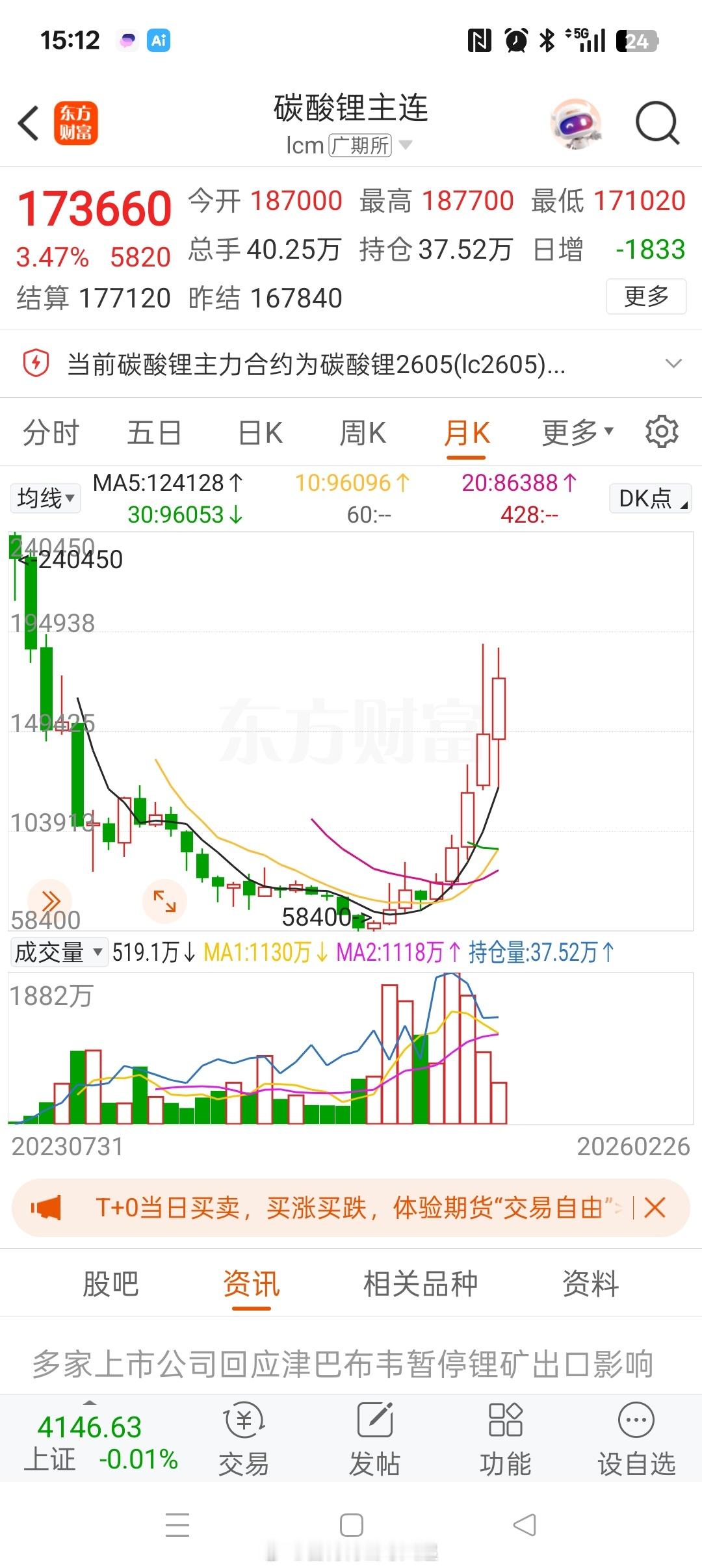20260226投资日记 昨天前天仓位太低了,今天买了点澳洲锂矿,没有电池业务的。买了点错过的10倍前st国内锂矿股。主动买套了。