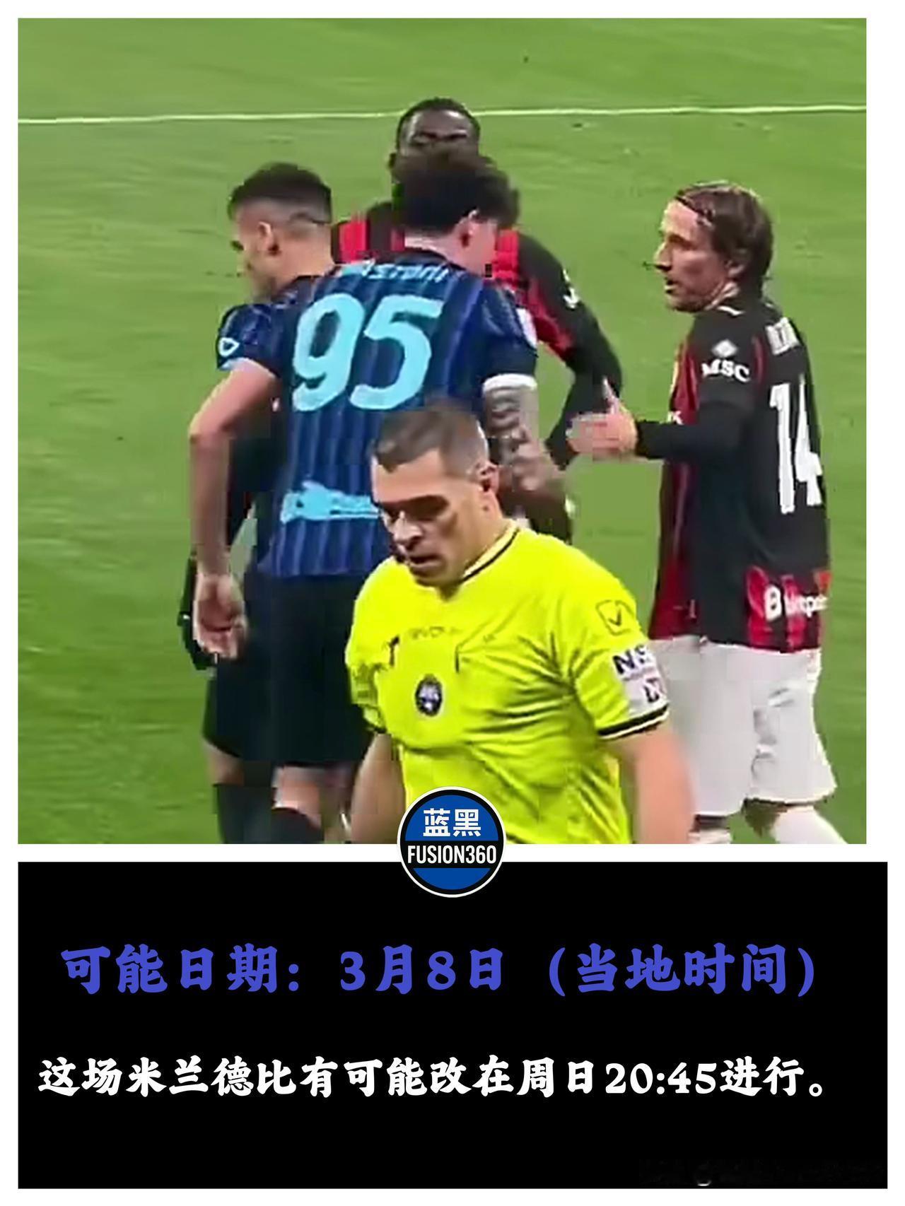 欧战出局后的苦涩红利:米兰德比锁定周日黄金档? 博德闪耀带来的阵痛尚未远去,欧战的意外谢幕却给梅阿查留下一份苦涩红利。由于周中赛程彻底清空,原定三月的米兰德比无需再向转播方妥协,极大概率坐稳周日 20:45 (当地时间,下同)的黄金档期。 这对深陷舆论漩涡的齐沃而言,意味着整整一周的完整训练周期,能在那场宿命对决前,将此前溃散的战术细节研磨至极致。 官方确认函预计将于 2 月 27 日正式落地,这场周日夜战早已超越纯粹的积分范畴。 它不仅是洗刷出局耻辱的战场,更是齐沃赢回梅阿查信任的最后筹码。这场纯粹且残酷的内战将直击灵魂,决定赛季冠军的心理海拔,也将最终定义蓝黑王朝的意志成色。国际米兰 💙🖤