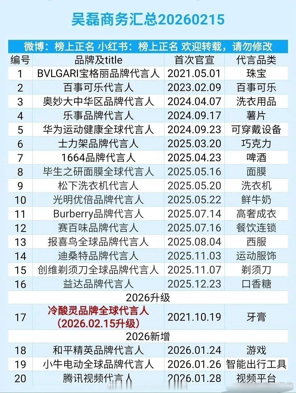 95生商务盘点王一博30个,丁禹兮22个,吴磊20个,侯明昊18个,王鹤棣16个,于适15个,张凌赫15个,王安宇14个,李昀锐12个,常华森7个,陈哲远6个,宋威龙5个,敖瑞鹏3个,丞磊1个
