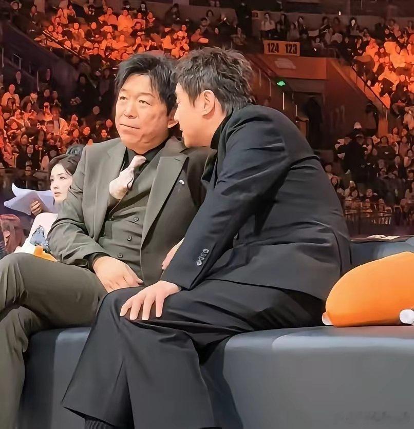 沈腾终于找到知音了!沈腾凑到黄渤跟前就开始眉飞色舞的嘀嘀咕咕了,沈腾说得是唾沫飞溅,而黄渤则听得是津津有味。有人说:给他俩换上花棉袄,再一人一马扎儿。不过好在不管沈腾说得多热闹,而黄渤也只是点了点头,表示认可了一下,并没有再发表什么。这哥俩光凑在一起就够让人们乐一阵子的了,再这样小声说点什么,就更具有喜剧色彩了。其实他们俩个可以一起拍个电影或演个小品啥的,肯定会一炮而红的。