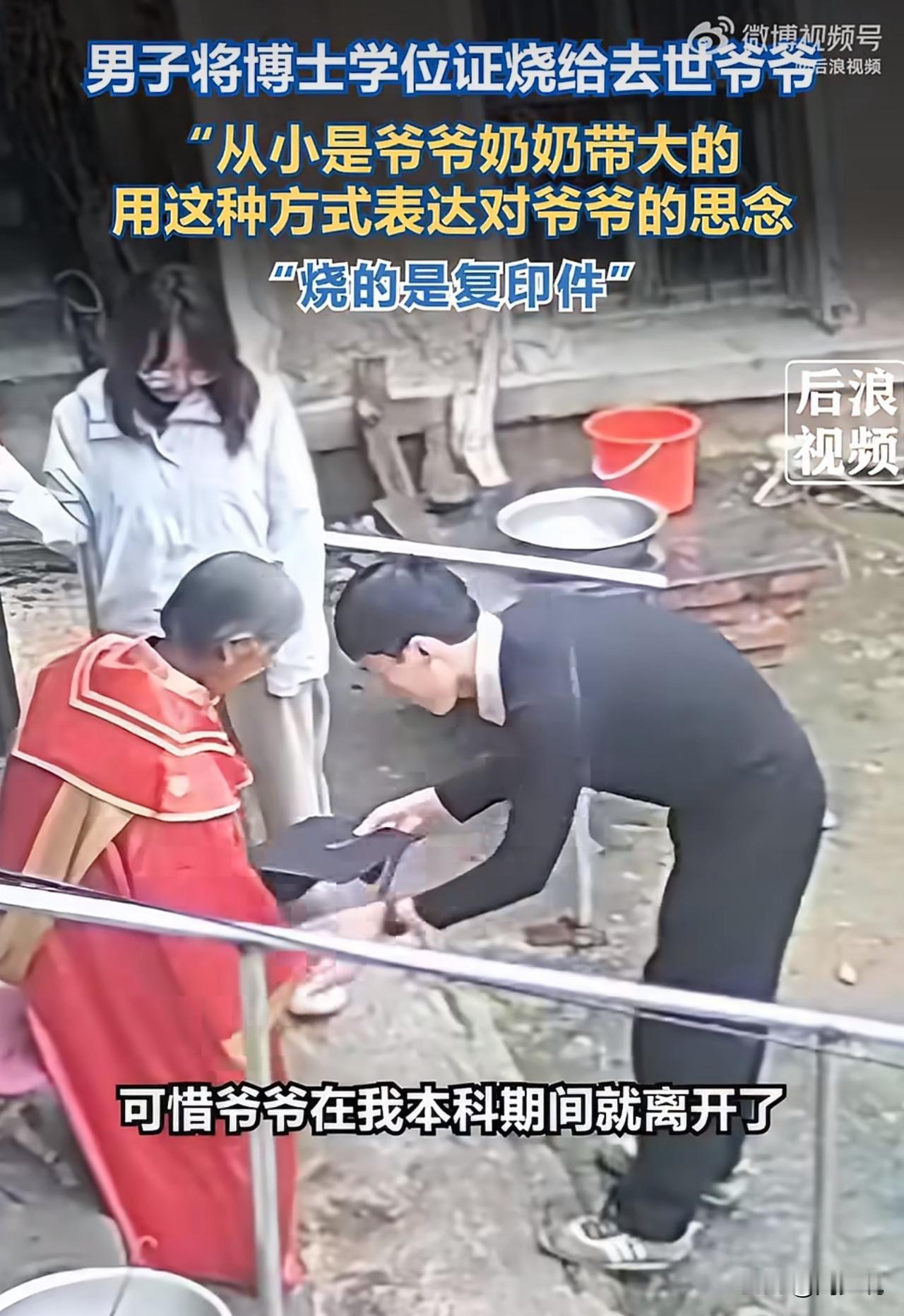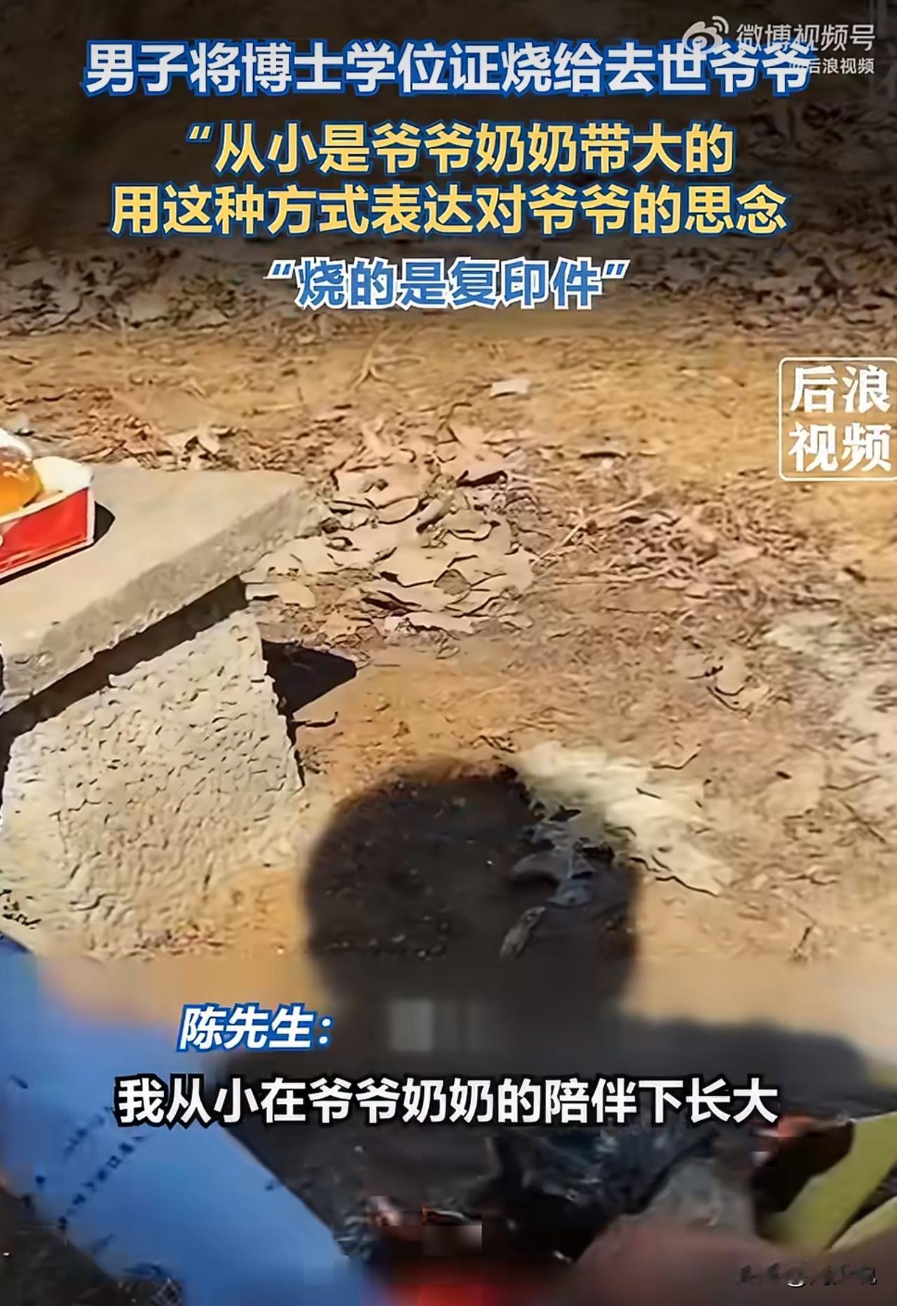 “火上热搜!”山东济宁一位博士毕业生,竟把学位证折成元宝,烧给了去世的爷爷,无数网友看完瞬间破防。 小伙从小由爷爷奶奶拉扯长大,感情格外深厚。遗憾的是,爷爷没能等到他博士毕业,在他读本科时就离开了。为了让九泉之下的爷爷看看自己的成长,他提前打印好学位证复印件,细心折成元宝,用这种特别的方式,和最亲的人分享这份来之不易的喜悦。 此视频曝光后,瞬间引发网友热议。有网友当即表示:“不是真证书,心意却比什么都真,这是最体面的尽孝。” 也有人感慨:“隔代亲最戳心,爷爷要是能看见,该多骄傲啊。” 在周少看来,其实尽孝从不是华丽的排场,而是藏在心底的惦记与感恩。这位博士用最朴素的方式,完成了对亲人的告慰,也把刻在骨子里的教养展现得淋漓尽致。 如今不少孩子习惯了被长辈呵护,却很少懂得回望与感恩。这样的举动,看似简单,却给很多家庭上了一课:真正的成长,是不忘来路;最好的成就,是让牵挂你的人安心。 这一纸复印件,远胜过无数说教,它让我们看见,感恩与孝顺,从来都藏在最真诚的行动里,给这位博士称赞!#寻美三湘# #周少说教育#