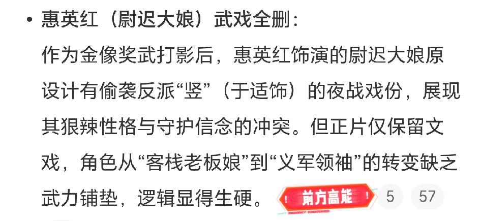 镖人到底被删了多少戏? 随着这几天镖人的路演,好多被删减的戏份浮出水面,怪不得看的时候好多不理解,原来如此啊! 最大的不理解,惠英红作为武打影后是来演一段母女情深打酱油的? 原来他和竖有一大段打戏,是在河边夜战偷袭,结果一剪没! 其次是谛听和老莫的对手戏,谛听闯进莫家集寻找刀马,老莫和他把酒言谈,谛听是展开了内心世界的,也是一剪没!这就是为什么看起来谢霆锋的性格很不完整的原因! 竖也有一段和小七互动的戏份,两个人互相泼水,竖展现了他人性里温暖的一面,也是人物转变的转折点,再次一剪没,所以我们看着竖变成好人了就有点突兀! 剪掉了这么多,只为了保留主线,刀马和谛听两段大战,加起来就有十几分钟,刀马和五大家族的大战也有十几分钟,总之一句话,全是围绕着刀马,打!这就是有人说全程在打,看的直迷糊的原因[捂脸]! 原片三个小时,剪成了两个小时才上映,必然会有不连贯的地方! 好可惜,希望有一天能放出原片,让观众们看一个完整的镖人镖人票房 镖人
