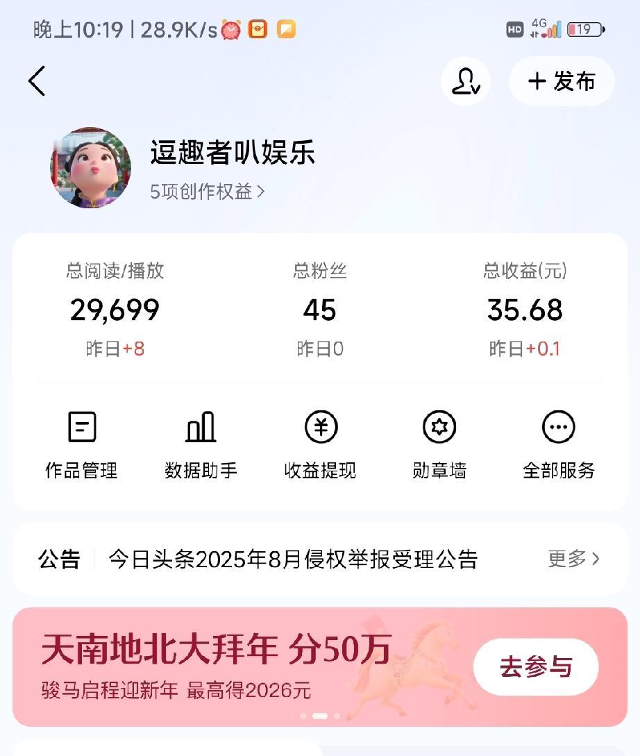 有人总问我:天天更新,收益真的很高吗? 说实话,现在平台收益真的降了, 放在2022年,一万阅读还能有一百块, 现在真的少太多了。 很多人做着做着就放弃了, 无非就是觉得:投入时间多,收入不成正比。 可我觉得,坚持日更,每天挣个几十块, 买点菜、买点水果,不也挺好吗? 网上总有人晒一天几百上千的收益, 说真的,我都半信半疑。 就算真有,那也是做了七八年的大咖, 咱们普通创作者,比不了,也不用羡慕。 但你想过没有? 如果我们也能坚持几年, 将来是不是也有值得炫耀的一天? 别想太多技巧,先把坚持做到。 能天天更新的人,连10%都不到。 这是我真实的后台收入,不多,但如假包换,我很知足。 而且我发现, 每天输出、每天分享,进步最快的其实是自己。 思维、洞察力、表达能力,全都在悄悄变强。 这份成长,比钱更值钱。 姐妹,你现在还在坚持日更吗? 评论区晒晒你最真实的收益, 咱们不装、不卷,只聊真心话!