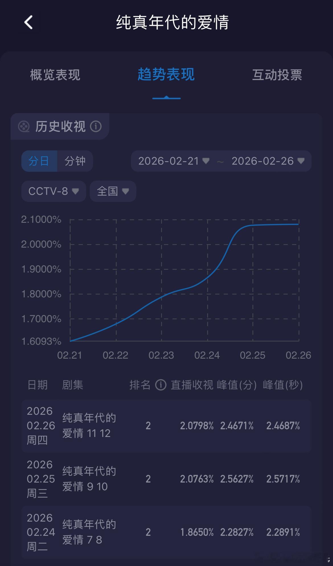 纯真年代的爱情收视率 酷云收视今日平走微涨,1-12集均1.8494%;1-10集CVB集均收视率1.666%