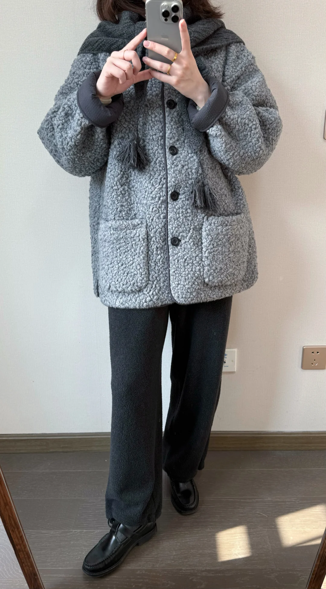 cleanfit简单出门 极简穿搭 通勤穿搭 灰色系 毛绒绒质感 初雪穿搭 羊羔绒 秋冬穿搭 毛呢外套