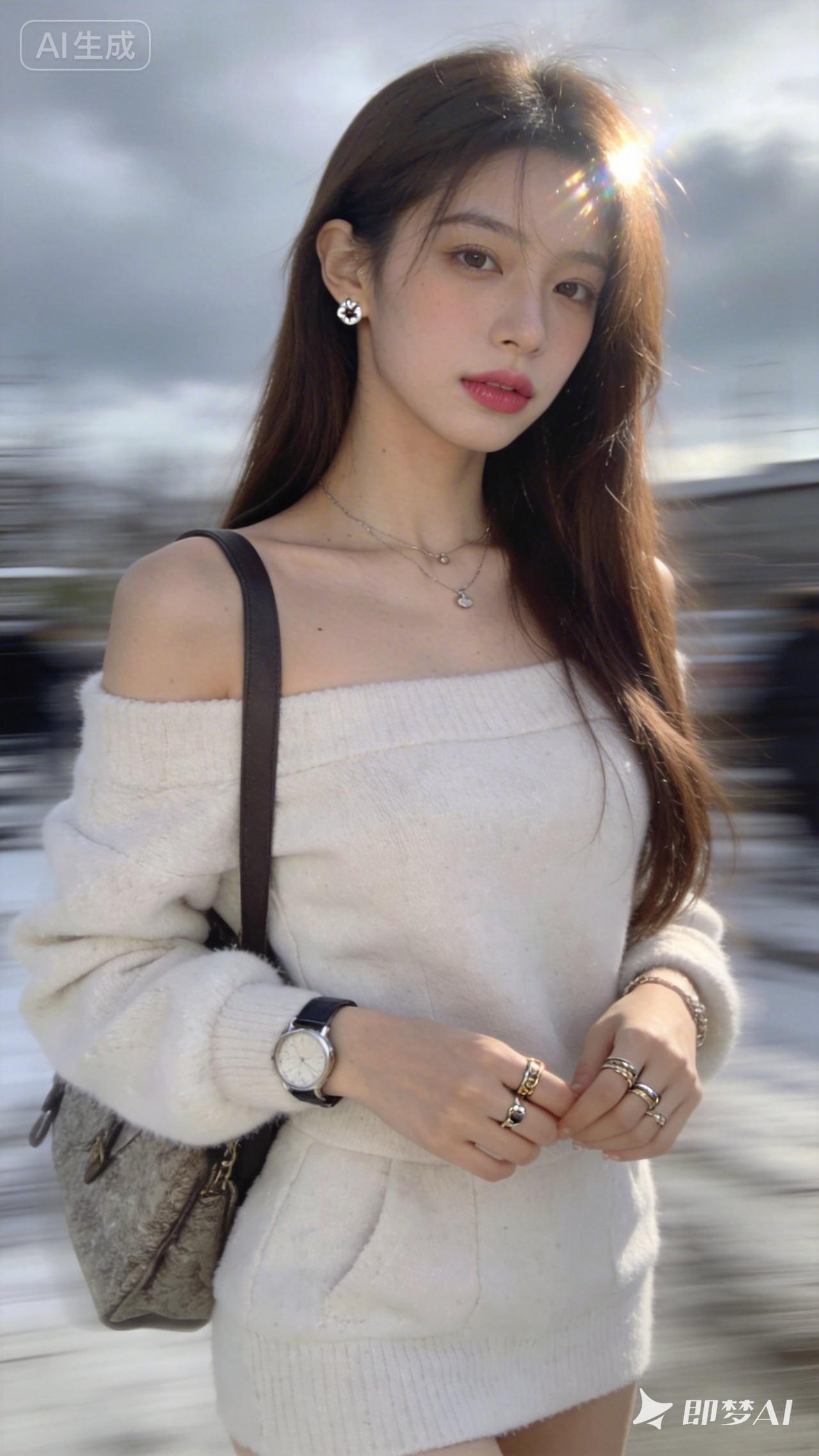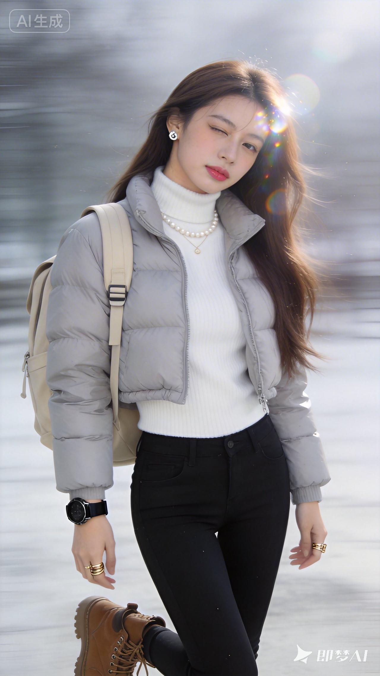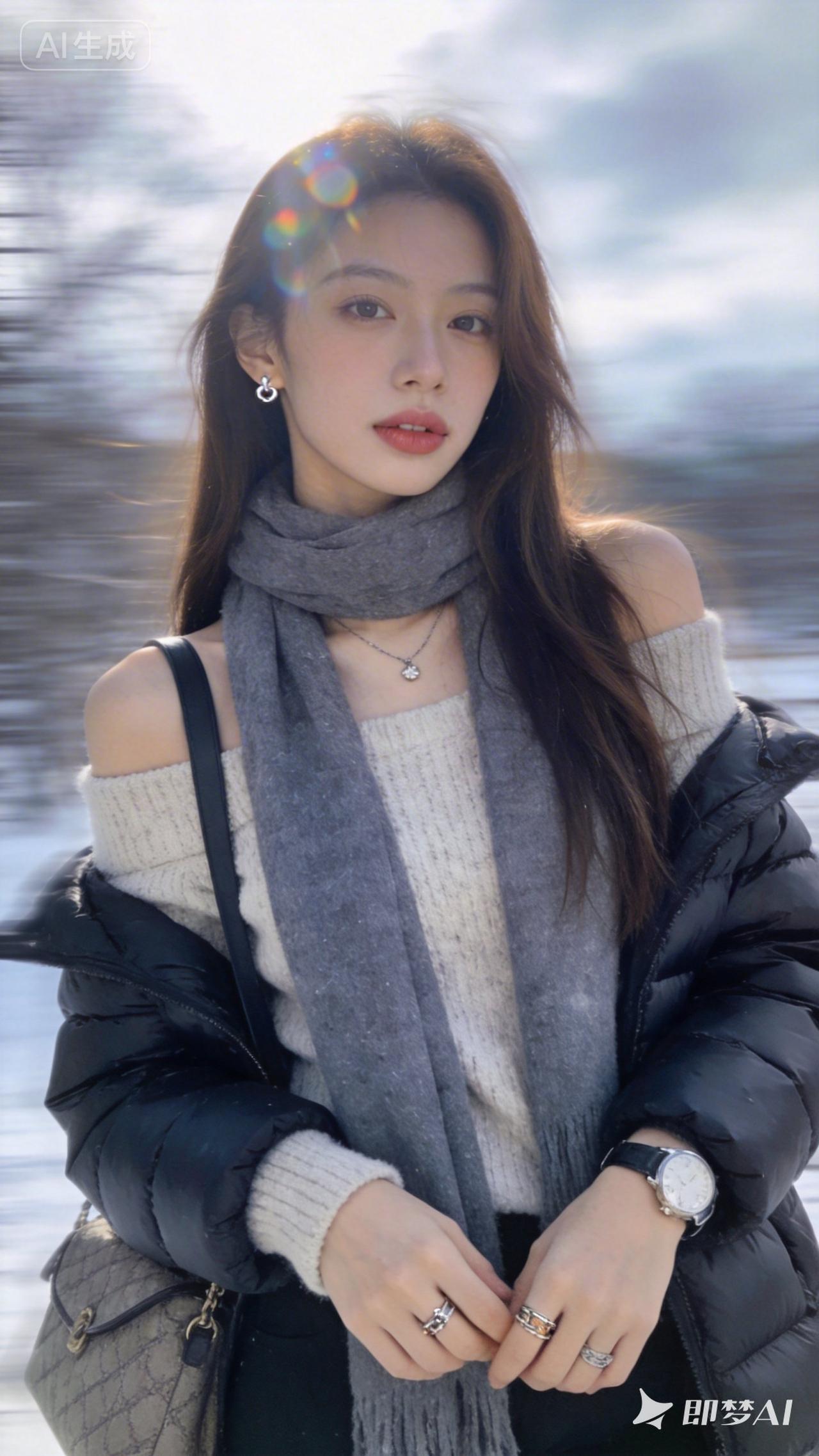 都市时尚女郎,佩戴口罩漫步街头,优雅穿搭引人注目