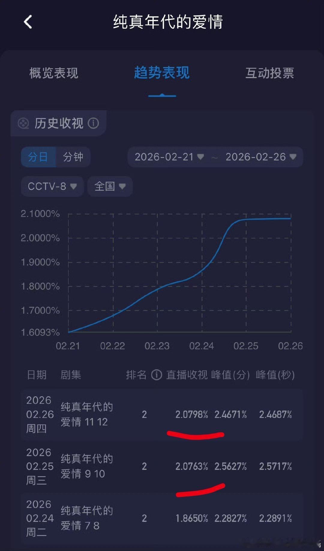 陈飞宇文艺工作者就得有文化才行陈飞宇纯真年代的爱情腾讯站内热度破27000 ,较前日+550酷云收视1-12集均1.8494%;持续稳定增长!1-10集CVB集均收视率1.666%,感觉有望破1.7%啊怎么看都稳赢~长势喜人陈飞宇文艺工作者就得有文化才行