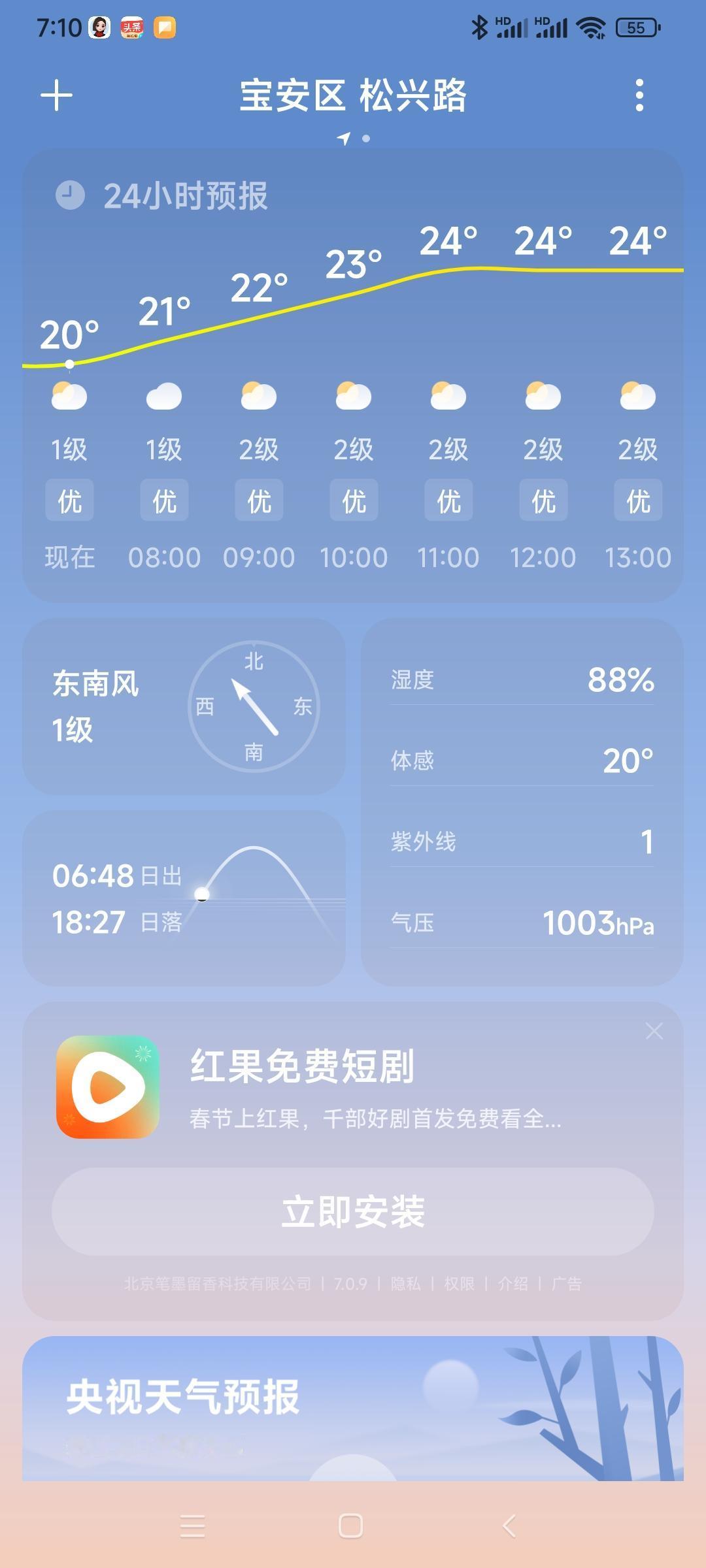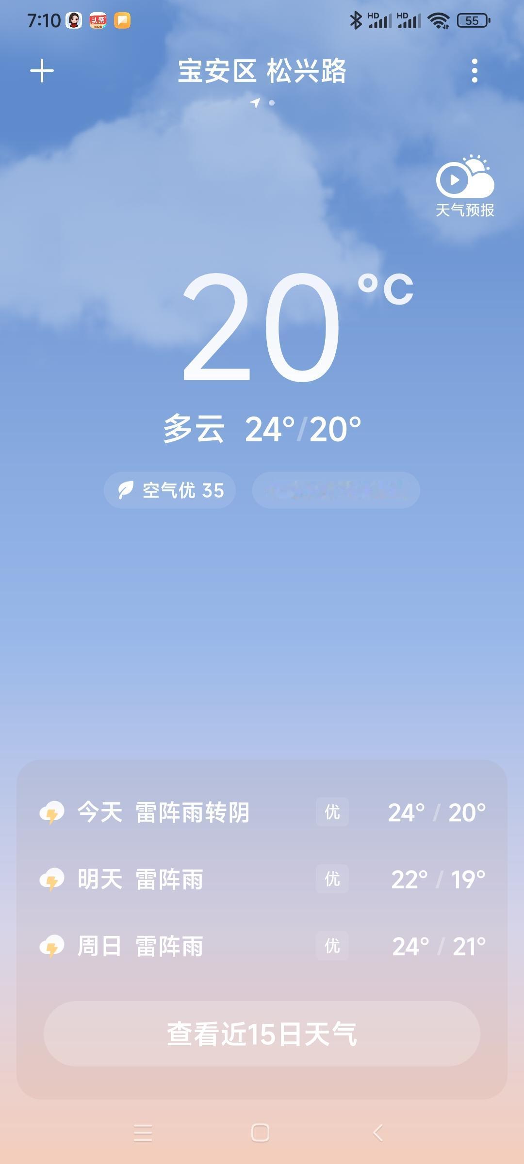 我的今日状态:😁轻松愉快 我这里的天气:🌤️多云深圳今日雷阵雨转阴天,气温20度到24度,湿度88度。大家早上好,正月十一快乐![作揖]