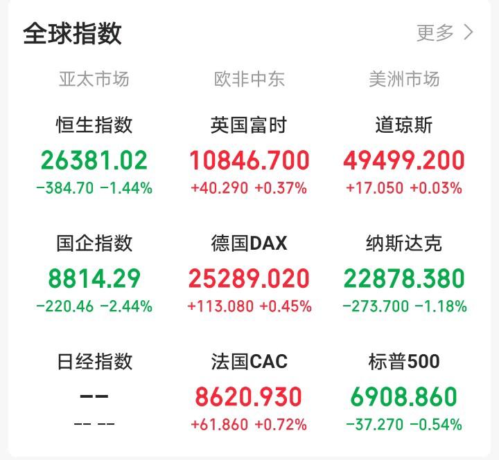 昨天晚上还想着A股震荡上行,今天大A还会反人性上涨! 一觉醒来,吓我一跳,富时中国三倍做多ETF大跌,纳斯达克中国金龙指数收跌,富时A50期指连续指数也收跌,老美三大指数集体走弱,氛围不算融洽!给大A今天走势蒙上了一层阴影。今天大A收红压力不小! 隔夜,道指微涨0.03%,纳指收跌1.18%,标普500收跌0.54%,富时中国三倍做多ETF大跌8.07%,富时中国三倍做空ETF大涨8.12%,富时A50期指连续指数下跌0.30%,纳斯达克中国金龙指数下跌1.78%,总体来看,中概股多数下跌!氛围不算融洽!今天大A有点悬! 昨天大A也没怎么跌啊?富时中国三倍做多ETF怎么这么大反应,大跌了8%?这是哪路大聪明,在作妖啊? 从当前大A指数运行空间来看,下方支撑4130点,上方压力4155点,昨日虽然震荡微跌,但还在正常运行空间内,没有选择方向向下,因此,我们也没必要太悲观,如果今天不破4130点,那么大A就还向上突破的可能! 至于今日行情,预计会小幅低开,全天震荡再收一根小阴线。 人最重要的是,要保持积极良好的心态,积极乐观的过好每一天。心有光,脚下有路,你远比自己想象的更坚韧,追光的人,终会光芒万丈。 理财有风险,投资需谨慎。大家一定要保持谨慎,做好风险控制。 点赞,关注是对我最大的支持!
