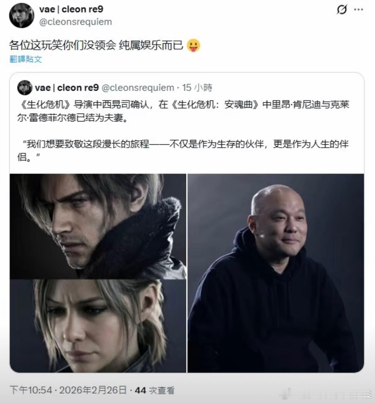 游戏 里昂跟克莱尔结为夫妻?原po主表示只是玩笑娱乐!生化危机9马上游福这局游戏就是年ai游我