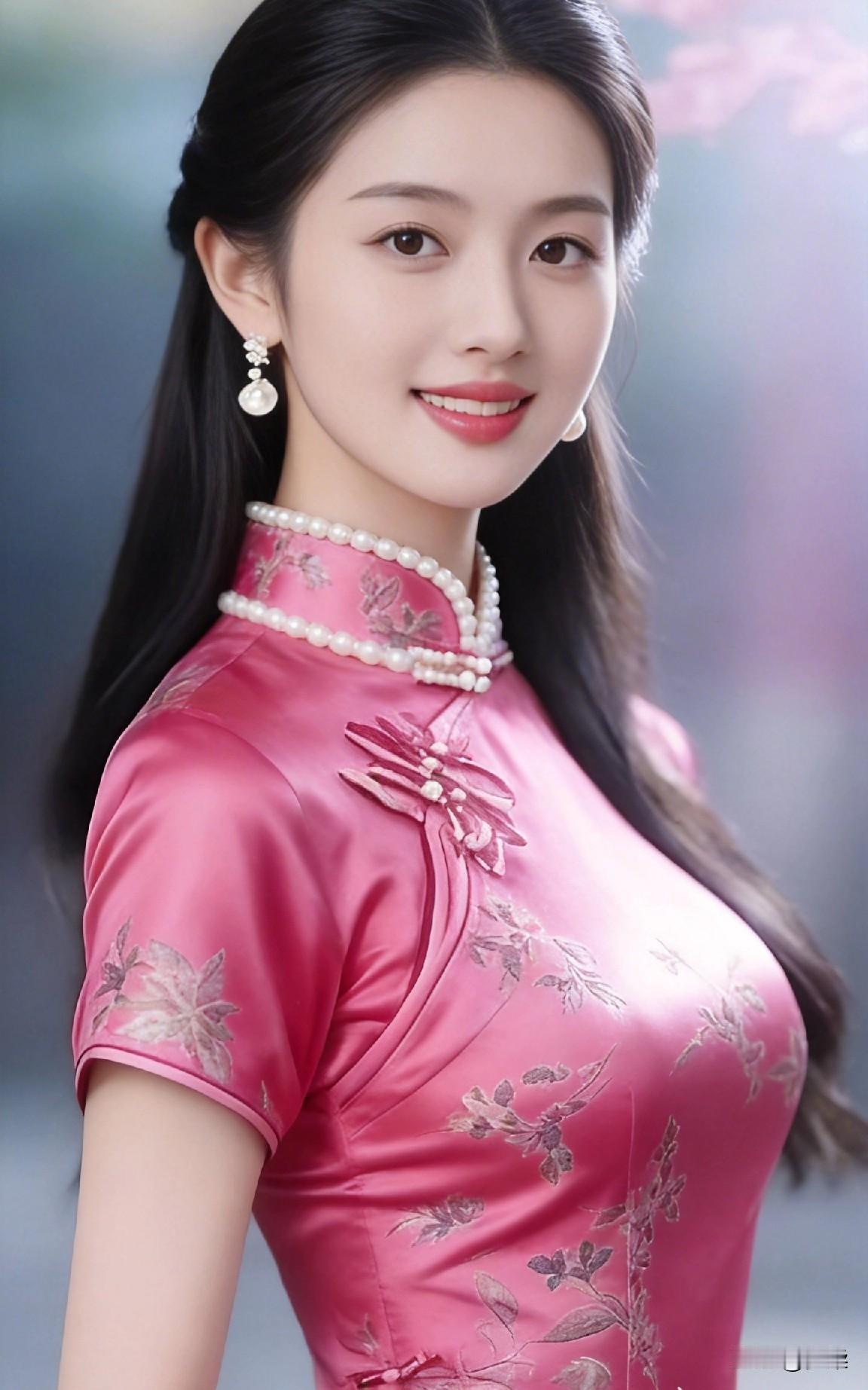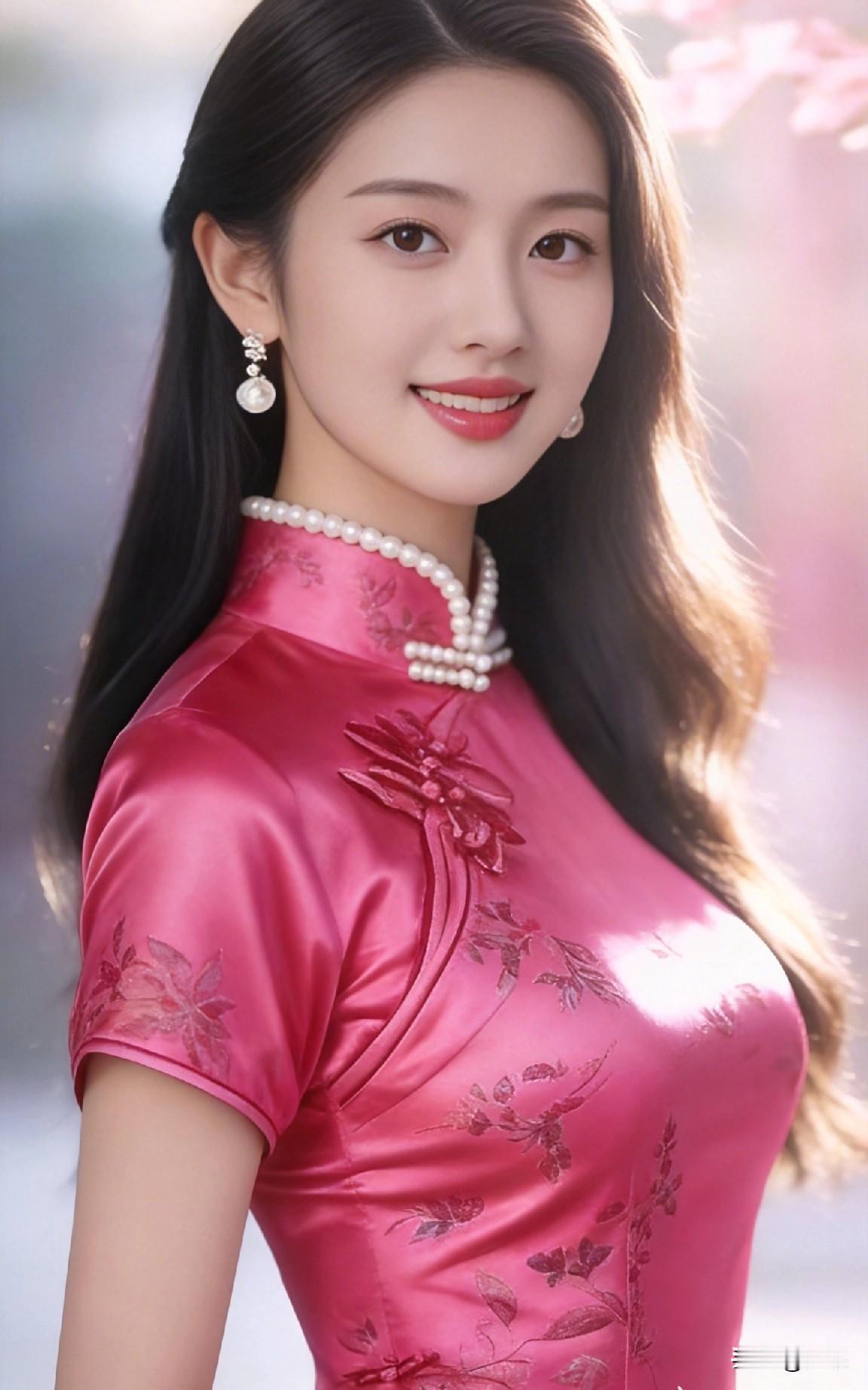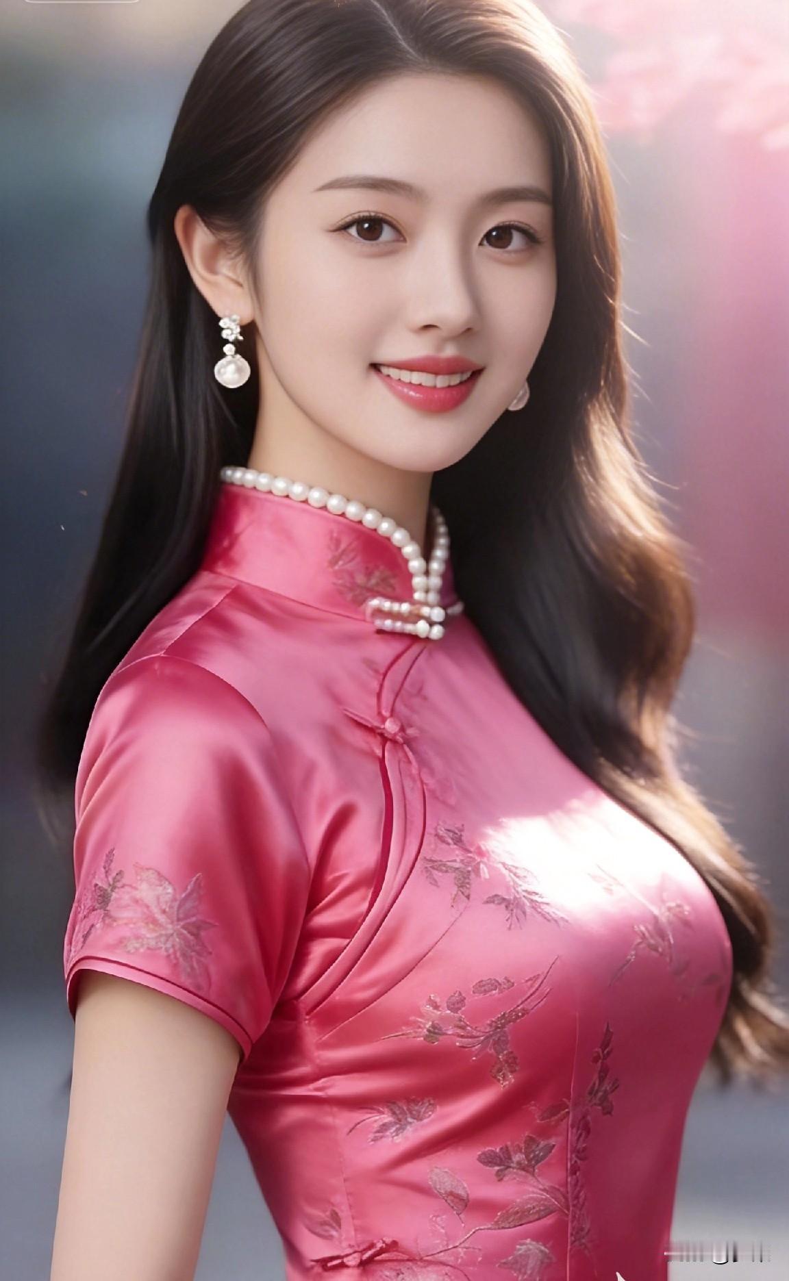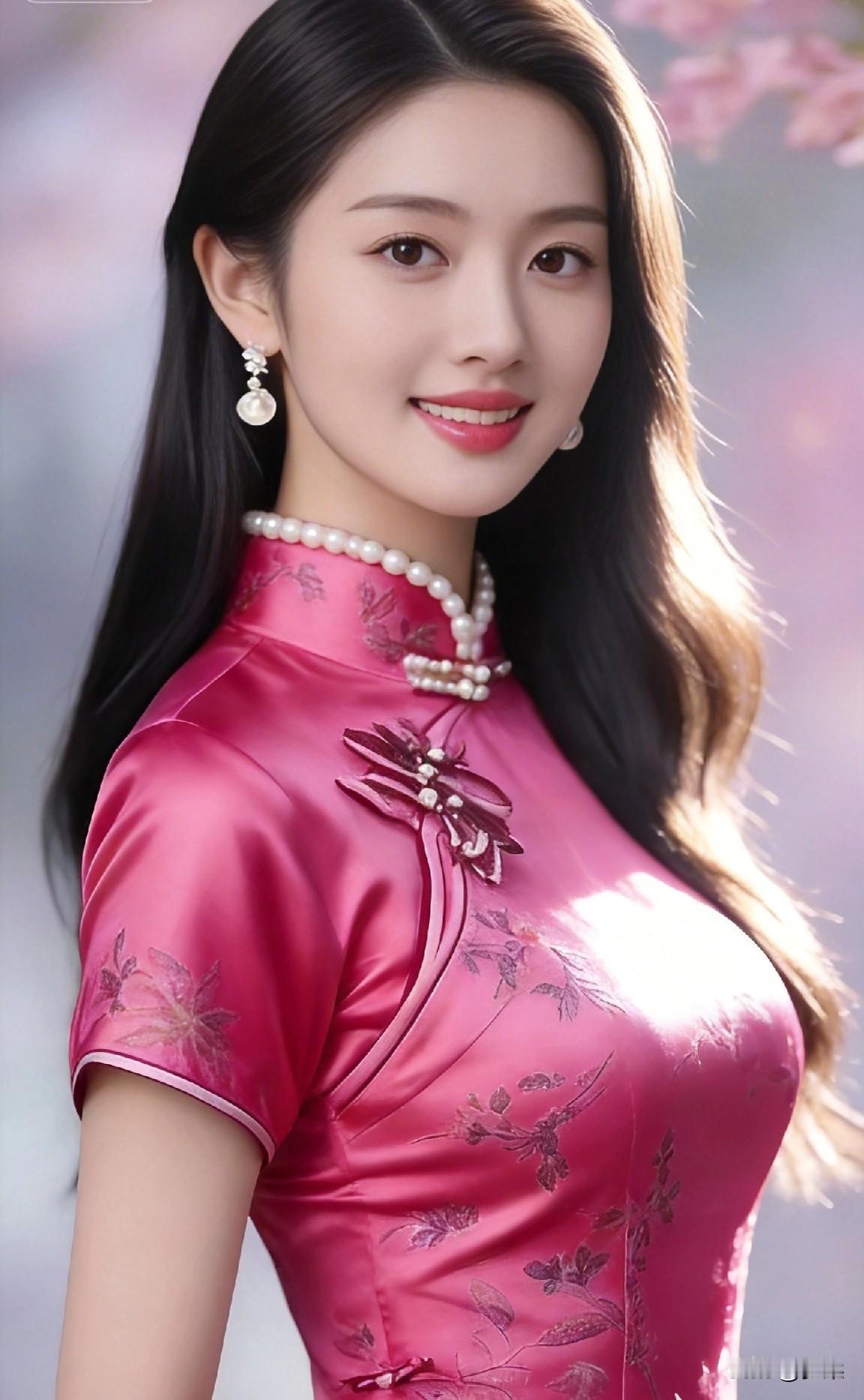 旗袍雅致衬娇容,白底牡丹显风情。玉珠圆润,风情万种。贴身裁剪,凸显性感。