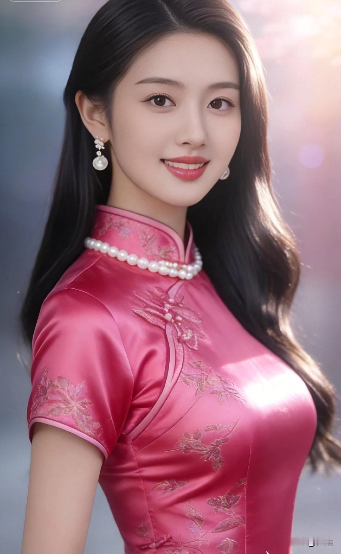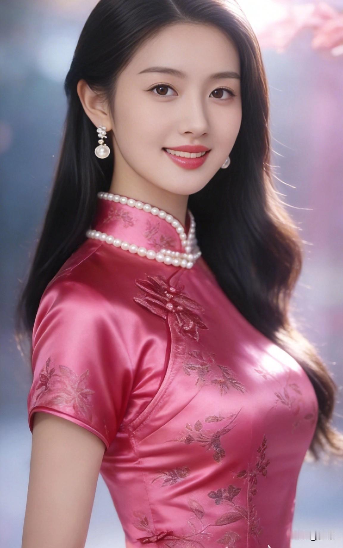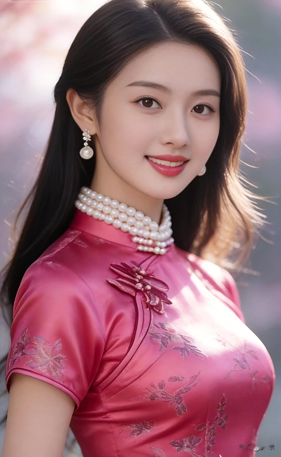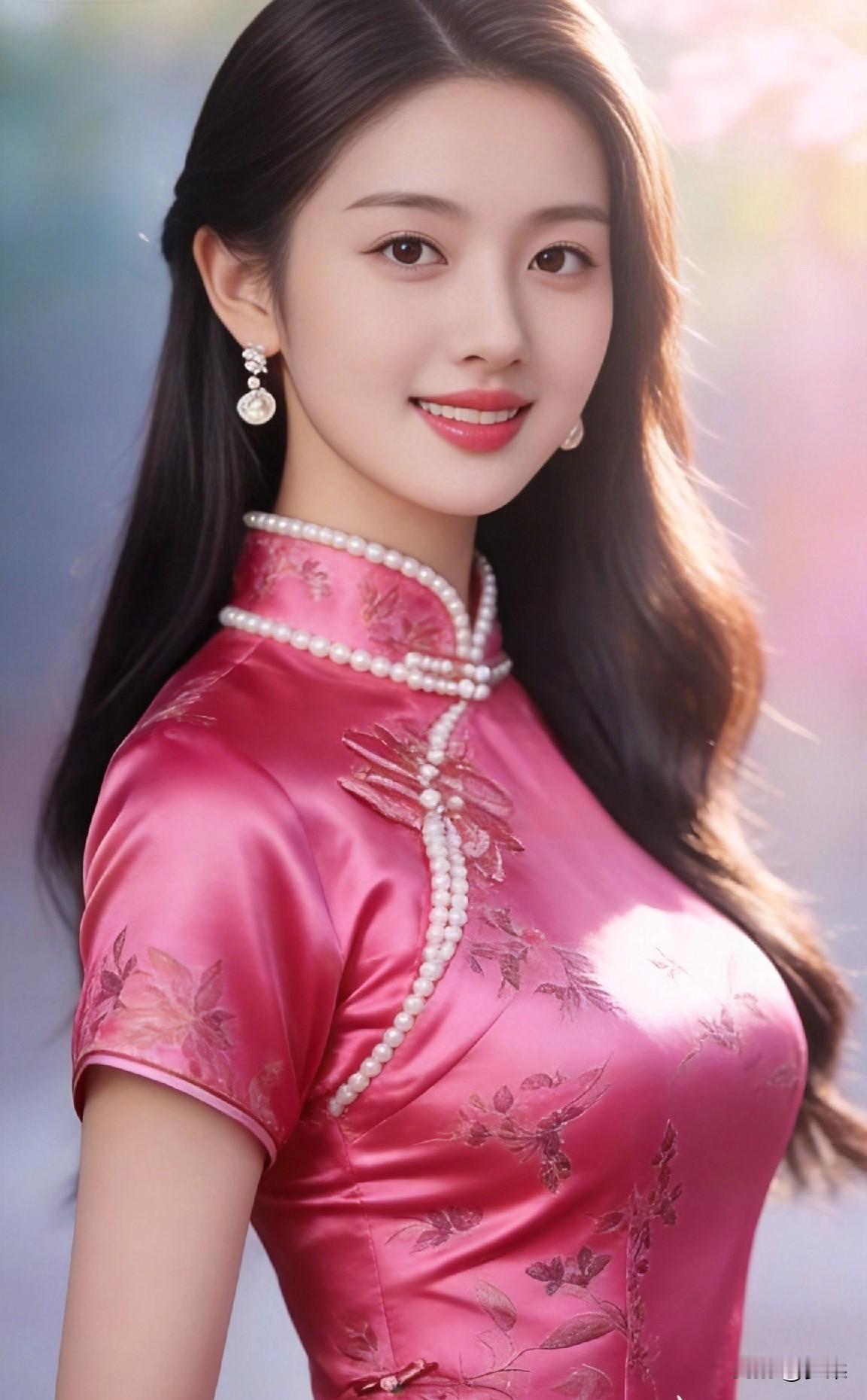 旗袍雅致衬娇容,白底牡丹显风情。玉珠圆润,风情万种。贴身裁剪,凸显性感。
