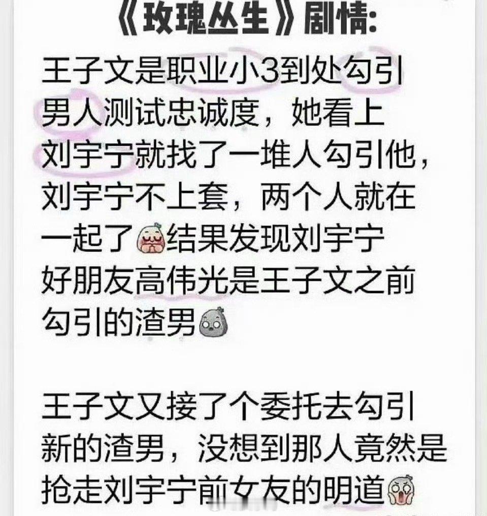 刘宇宁王子文玫瑰丛生剧情天惹,看到网友整理了电视剧《玫瑰丛生》的剧情,没想到居然这么抓马啊。王子文和刘宇宁这部剧的人设,这是要靠实力出圈啊,就是说俊男美女在演这部剧的时候,也应该恨透了男女主吧……王子文刘宇宁新剧人设