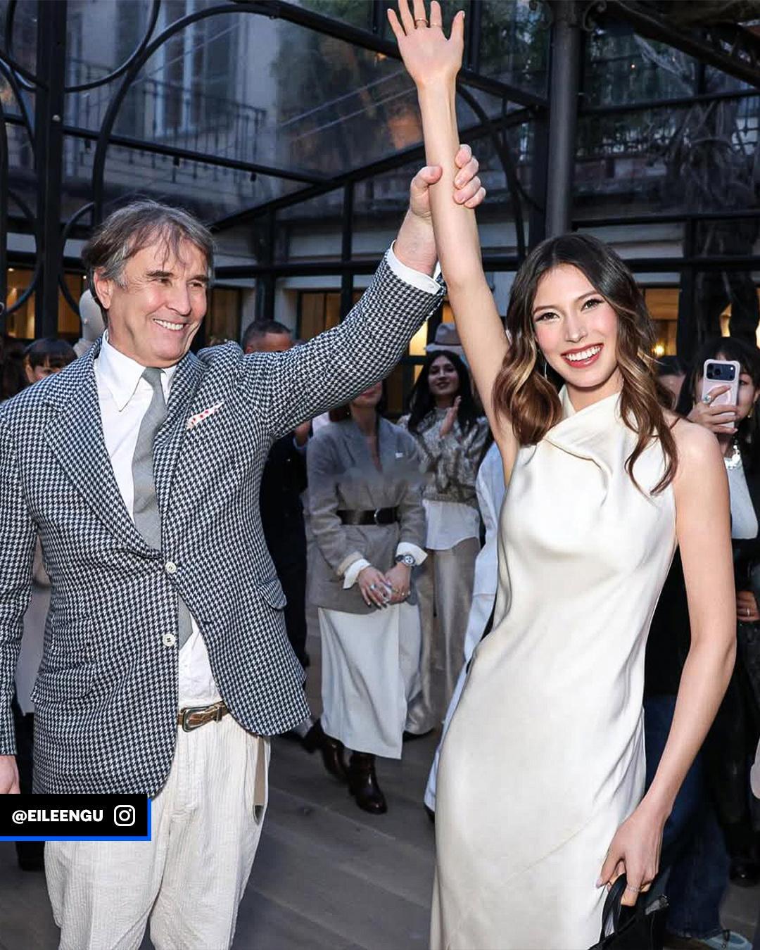 Brunello Cucinelli2026秋冬静态展谷爱凌身着纯白缎面挂脖长裙,外搭黑色短款皮衣出场谷爱凌再次闪耀米兰时装周全民聊冬奥
