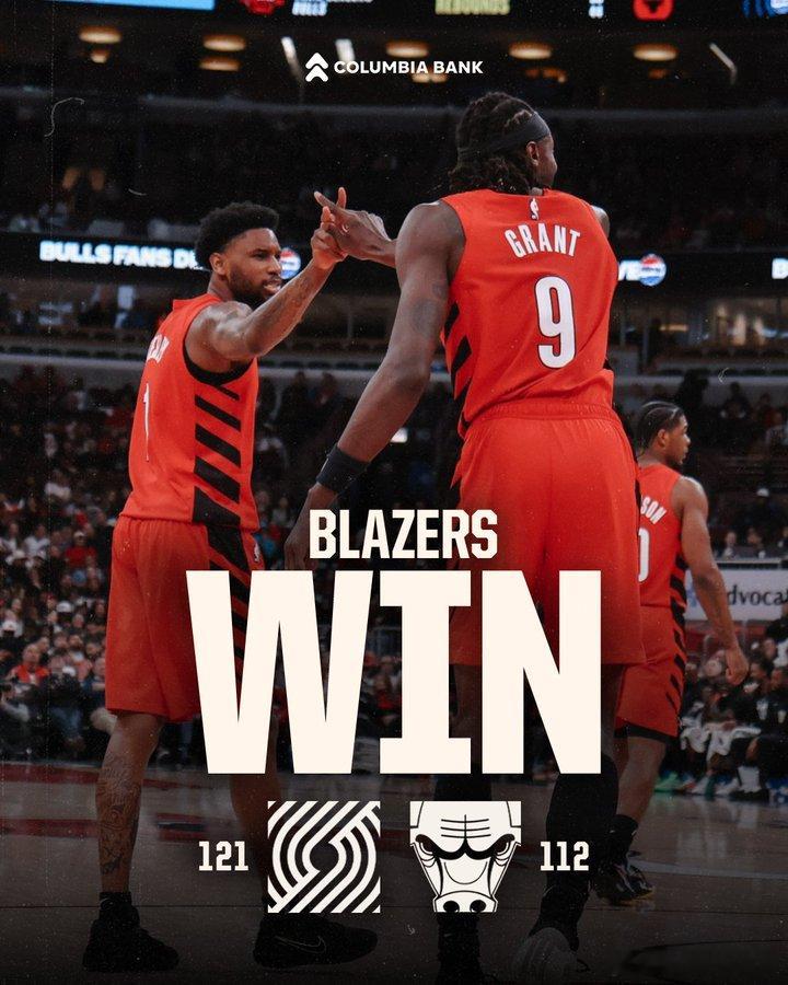 开拓者121-112战胜公牛,格兰特27分5板2助、卡马拉16分5板2助2断、罗威14分14板1助2断3帽,克林根本场比赛因伤缺阵,然而杨瀚森也并未获得上场时间。