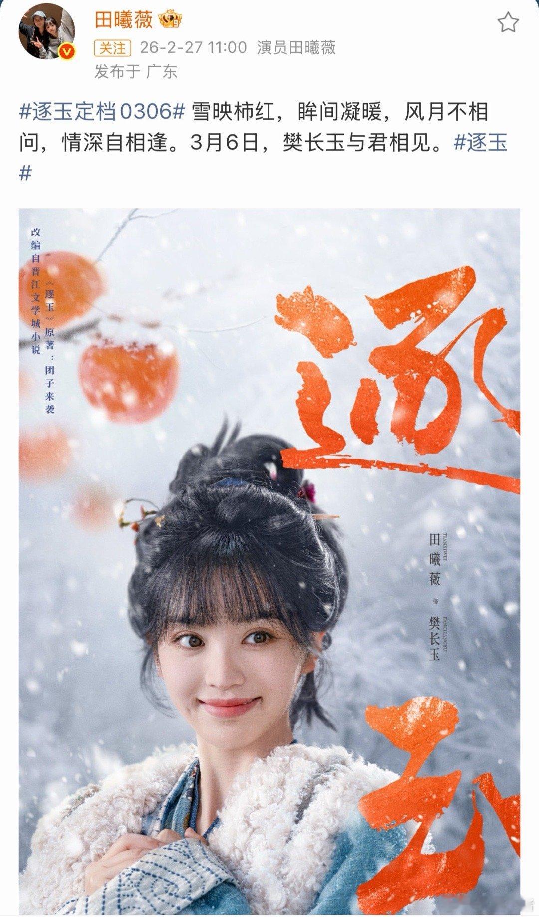 张凌赫田曦薇《逐玉》定档啦!燥候3月6号逐玉定档0306张凌赫田曦薇逐玉单人海