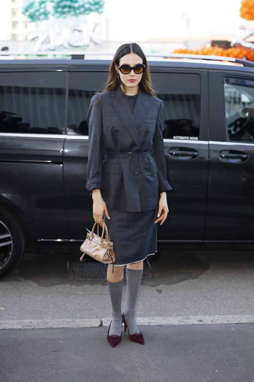 最近谷爱凌现身米兰,她这次穿了一身灰色的衣服,看起来很有干练时尚范儿。 谷爱凌里面穿黑色打底衫,外面套装深灰色的收腰装,下身穿黑色短裙,真的是太潇洒了。 她这次大秀细腰,还凸显出了完美的身材比例,不得不说她用单色系的衣服搭配出了完美的层次感。 谷爱凌脚踩黑色尖头高跟鞋,展现出了满满的犀利感,也非常的有俏丽之美。 她留着超美的披肩长发,还戴着黑色的墨镜,看上去又酷又拉风,也很有国际大牌明星魅力。