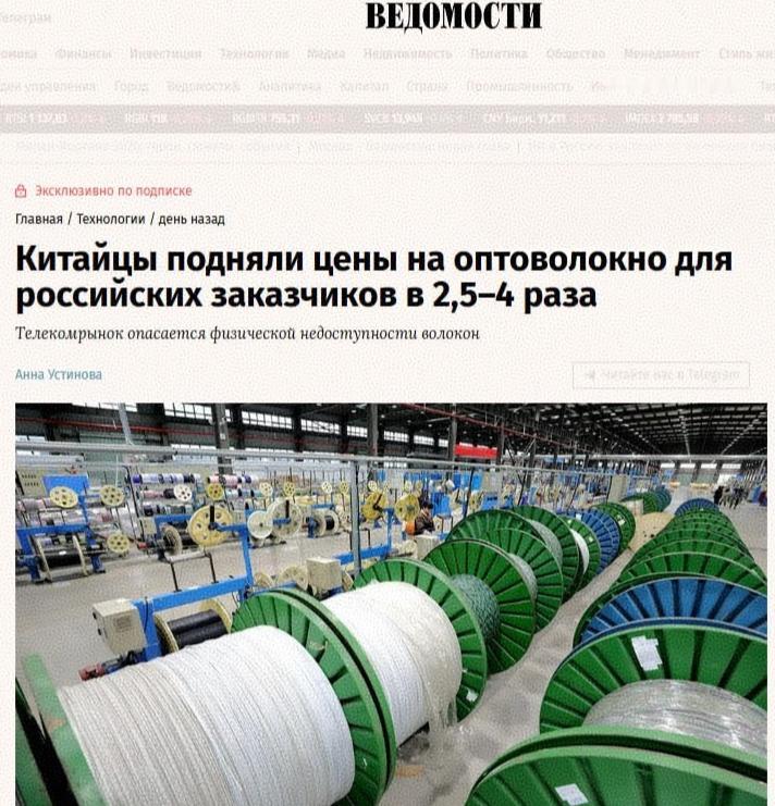 俄媒:中国光纤价格涨至原价的4倍 俄罗斯导报称,自2026年起,中国供应商对俄买家的光纤价格上调2.5~4倍,俄罗斯线缆生产商与运营商已证实这一消息。 不就是一根光纤吗,怎么能涨这么多?俄国人就不能换个地方买? 答案很简单,他们没得选,只能硬着头皮接受这个高价。 先说说涨价的具体情况,不是所有光纤都统一涨4倍,幅度在2.5倍到4倍之间,主流的G.652D型号光纤,2025年初在中国市场也就16元一公里,到了2025年底就涨到25元一公里,进入2026年1月,卖给俄罗斯的价格直接冲到40元一公里,涨幅实打实,没有半点水分。 而且中国供应商不光涨价,还加了一个条件——必须全额预付款,这就让俄罗斯的企业雪上加霜,现金流压力一下子大了不少。 俄国人之所以只能被动接受,最核心的原因就是他们自己造不出光纤了。 俄罗斯以前有一家唯一的光纤生产厂,在萨兰斯克市,名叫“光纤系统公司”,这家工厂一年能生产400万公里光纤,是俄罗斯二十多家电缆厂的核心原料来源。 但从2025年5月开始,这家工厂被乌克兰的武装力量多次空袭,彻底停摆,直到现在都没能恢复生产。这一下,俄罗斯的光纤供应就断了根,只能完全依赖进口。 可全球范围内,能大规模供应光纤的,只有中国。 目前中国的光纤产能占了全球的64%,远超美国的10%、日本的8%和欧洲的12%,而且长飞、亨通、中天、烽火这四家中国企业,就占了全球光纤产能的38%,掌握着全球80%的光棒产能。 光棒是生产光纤的核心原料,扩产周期要1.5到2年,现在全球光棒都处于满产状态,短期根本无法增加产量,这就意味着,除了中国,俄罗斯找不到第二个能满足他们需求的供应商。 更关键的是,俄罗斯对光纤的需求还在急剧增加,这也让他们在价格谈判中完全没有话语权。 2025年之前,俄罗斯的光纤消费量还不到全球的1%,可到了2025年,这个比例一下子涨到了10.5%,全年采购了近6000万公里光纤。 需求暴增的原因很简单,一方面是俄乌战场的需要,现在俄罗斯的无人机,尤其是FPV无人机,都是用光纤来控制的,这种光纤能让无人机飞行距离达到50公里,还能避开电子干扰,在战场上作用很大,对光纤的需求量自然猛增。 另一方面,全球范围内的光纤需求都在暴涨,不止俄罗斯一个国家缺。 现在AI发展越来越快,智算中心需要的光纤量,是传统机房的3到8倍,一个万卡集群的智算中心,就要消耗10万芯公里的光纤。再加上中国国内的“东数西算”、5G-A、千兆光网建设一直在推进,也需要大量光纤。 全球光纤缺口已经达到30%,中国供应商优先满足国内和全球其他高需求市场,留给俄罗斯的份额本身就少,涨价也就成了必然。 可能有人会觉得,中国是不是故意抬高价格“卡脖子”?其实不是,这本质上就是市场供需决定的。 中国光纤企业的出口价格,本身就比国内高10到15%,而且现在国内的AI、无人机等新兴市场,光纤价格已经接近出口价格,企业不需要靠出口俄罗斯就能获得高利润。 对中国企业来说,卖给俄罗斯只是正常的商业行为,涨价只是顺应了全球市场的趋势。 涨价带来的影响,已经开始在俄罗斯显现。俄罗斯的线缆生产商成本大幅上升,只能要么自己消化成本,要么提高电缆售价,最终这些成本都会转嫁到消费者身上,比如通信资费、暗光纤租赁价格都会上涨。 而且全额预付款的要求,让很多俄罗斯企业现金流紧张,甚至可能影响到他们的生产计划。更麻烦的是,他们现在不光要面对高价,还要担心供应稳定性,万一中国供应商优先满足其他市场,俄罗斯可能连高价光纤都买不到。 从长远来看,俄罗斯也想摆脱对中国光纤的依赖,比如重新修复被炸毁的工厂,或者找其他国家合作建厂,但这都需要时间和资金。 光棒的生产技术壁垒很高,不是短期内就能突破的,工厂重建和产能恢复,至少需要一两年时间,而这期间,他们只能一直依赖中国进口。 说到底,这次中国光纤对俄涨价,看似是价格问题,本质上是全球供应链和产能格局的体现。中国掌握着核心产能和技术,全球需求又持续暴涨,而俄罗斯自身供应链断裂、需求激增,多重因素叠加,才导致了这种被动局面。 对俄罗斯来说,想要改变现状,要么尽快恢复本土产能,要么找到新的供应渠道,否则只能一直接受中国的定价,没有其他选择。这也给所有国家提了个醒,核心产业不能过度依赖外部,否则一旦出现意外,就会陷入被动。