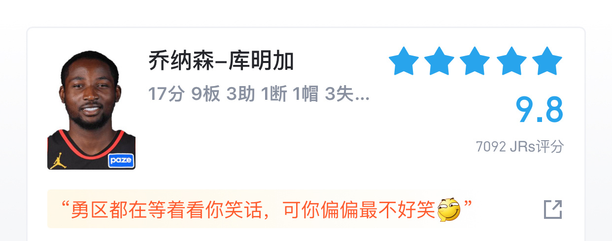 莱昂斯很惊喜,恭喜勇士又找到一个桑托斯式的球员,防守不失位、篮下卡位、防守脚步很