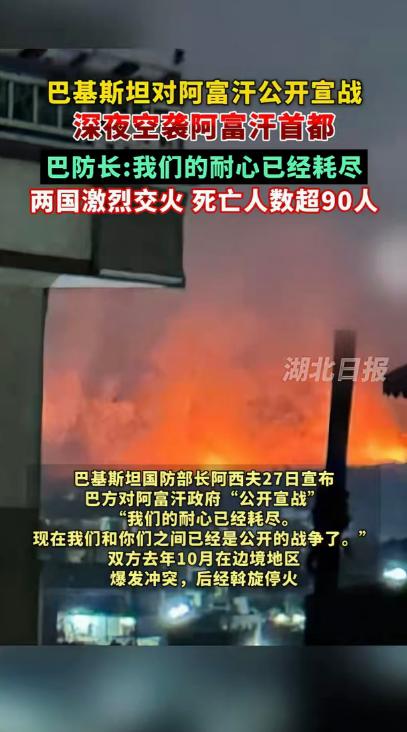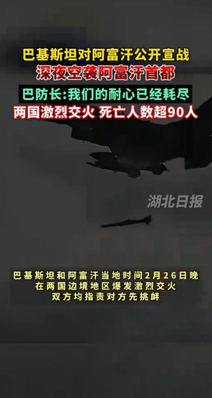 新年邻国和邻国开炮!据湖北日报了解,当地时间 2 月 26 日 20 时许,巴基斯坦与阿富汗在边境爆发大规模武装冲突,27 日冲突持续升级。阿富汗方面称对巴方边境军事设施发动大规模进攻,打死 55 名巴方士兵并夺取多处哨所;巴方称阿方无端发起炮击,已打死 36 名阿方武装人员,巴方 2 人阵亡。2 月 27 日凌晨,巴基斯坦空袭阿富汗喀布尔、坎大哈等地军事目标;巴基斯坦国防部长同日表示,巴方与阿富汗已进入公开战争状态,双方耐心耗尽。 2026年马年对中国人来说,是一个风调雨顺的好日子,但是作为古中国的少数民族成立政权发生纷争,我们也是不愿看到的,毕竟和平来之不易,战争劳民伤财,增加了全球不稳定的因素,目前出国游,多数是到日本及韩国或东南亚,因为没有战争,所以中国人喜欢游玩,但是对巴基斯坦和阿富汗来说,因为战火的因素,大家不愿意到这里游玩,自然无法取得游客的收益,对当地人民来说不是好事情,战争从来不是最优的解决方式,呼吁两国积极降温,积极建设西北国际旅游线路,这对经济蓬勃发展有意义,战争会降低交流,对经济发展无利!