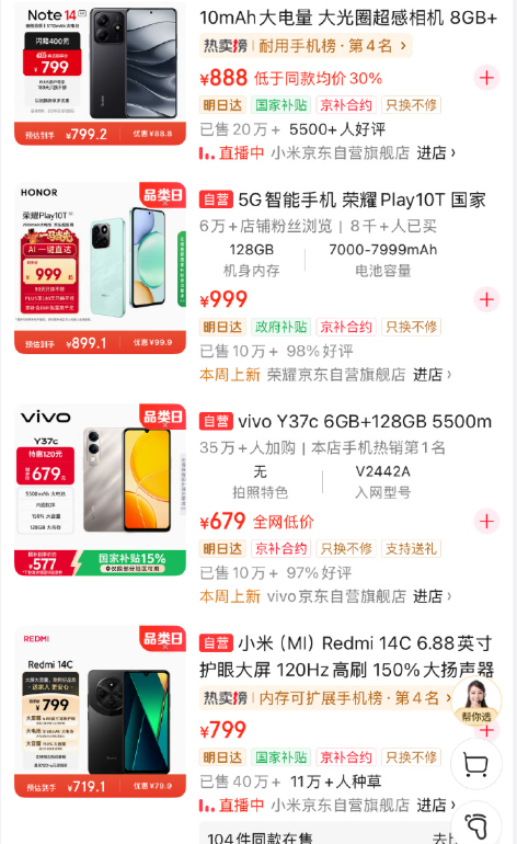 千元机或将消失 其实很多厂商的出货量最大的就是千元价位,大不了压缩一下手机存储配置,再加上国补的力度,涨幅肯定没有旗舰大