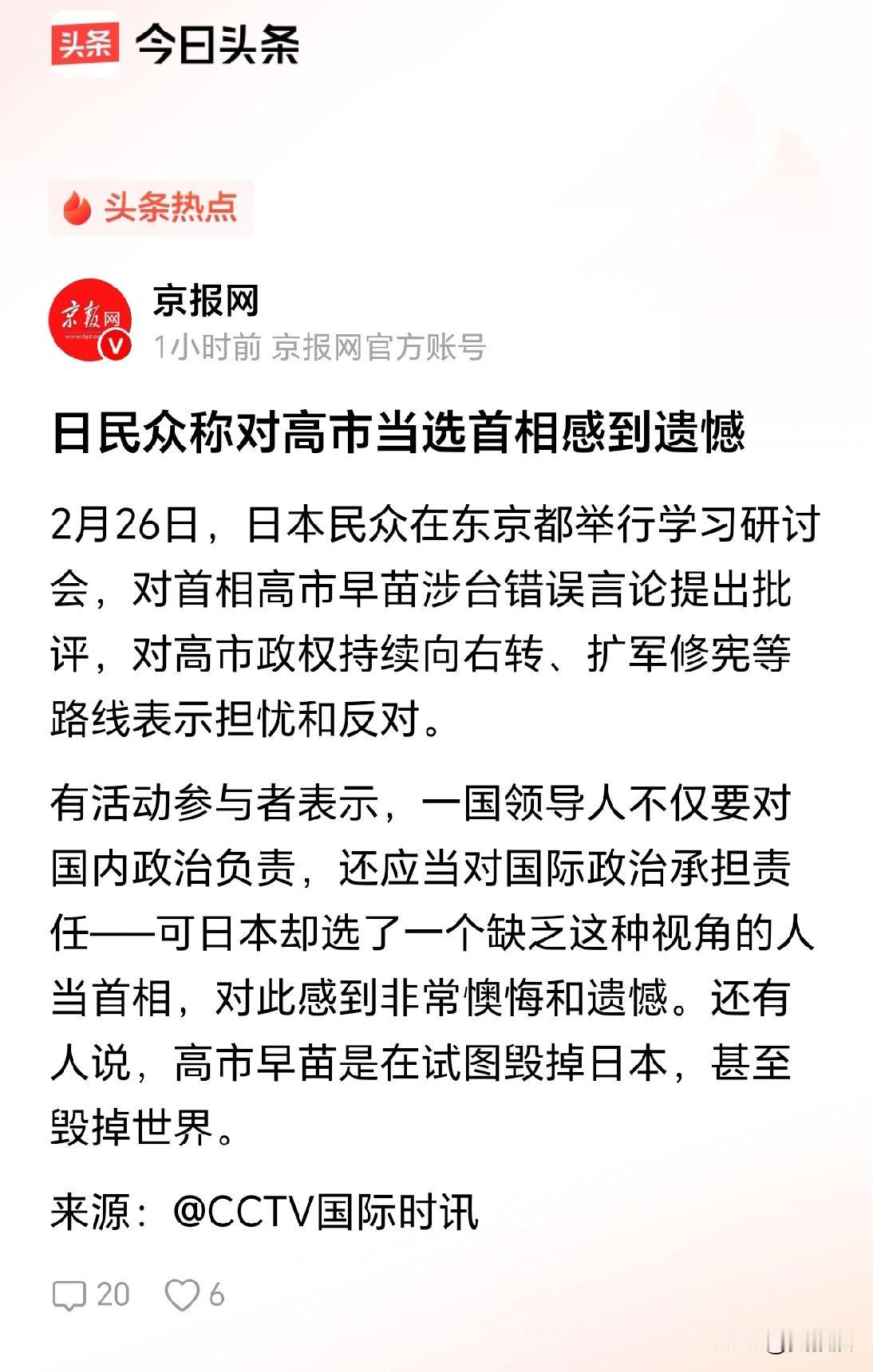 日民众称对高市当选首相感到遗憾