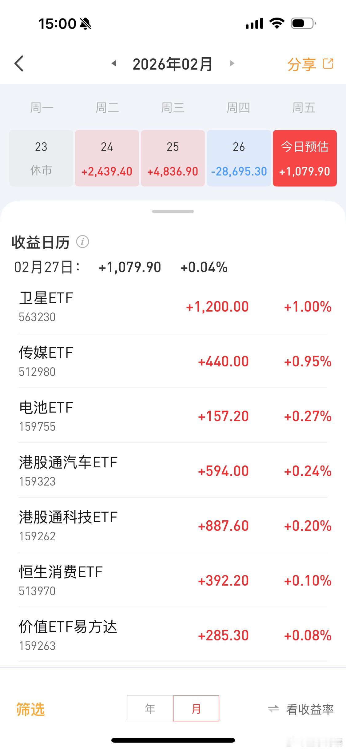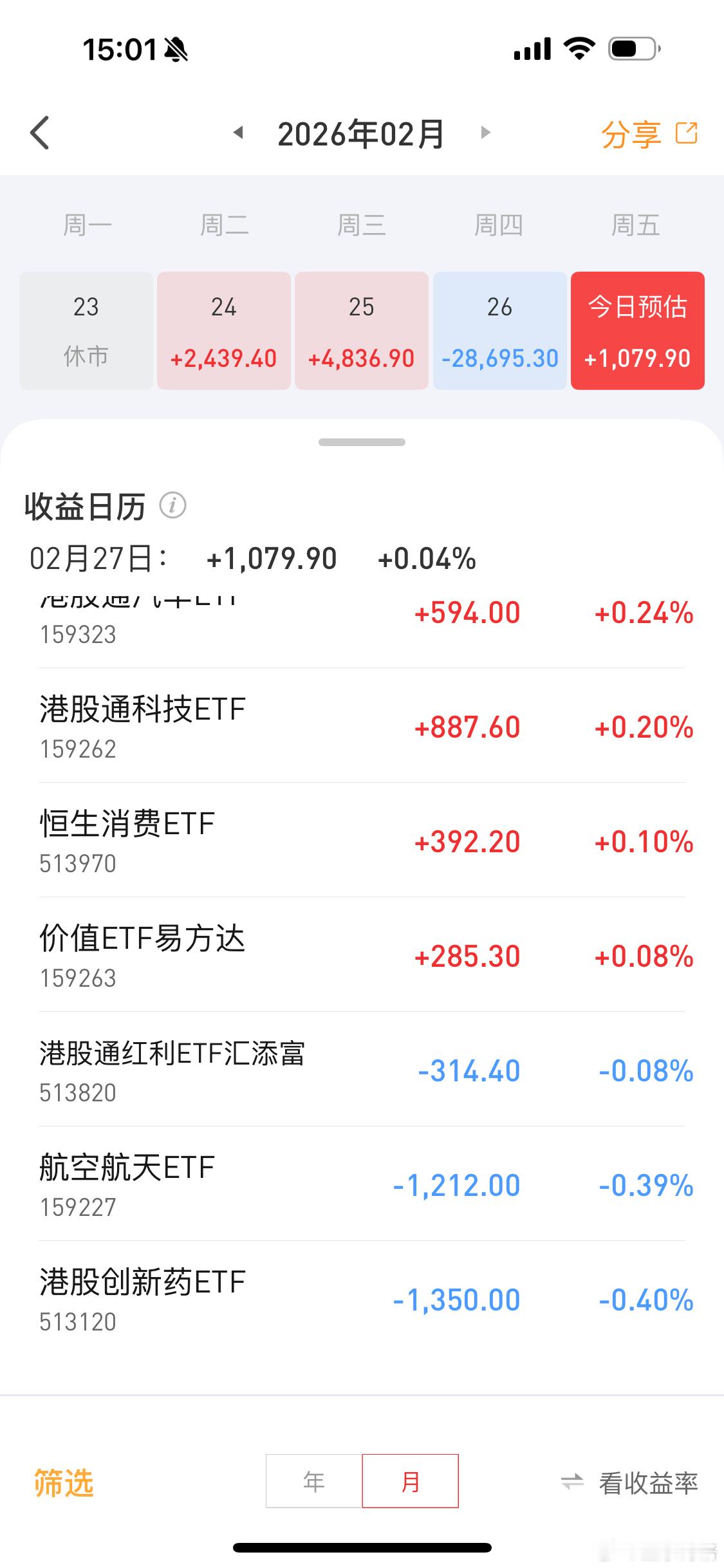 今天就赚了一千;etf账户本周巨亏了恒生科技基金港股