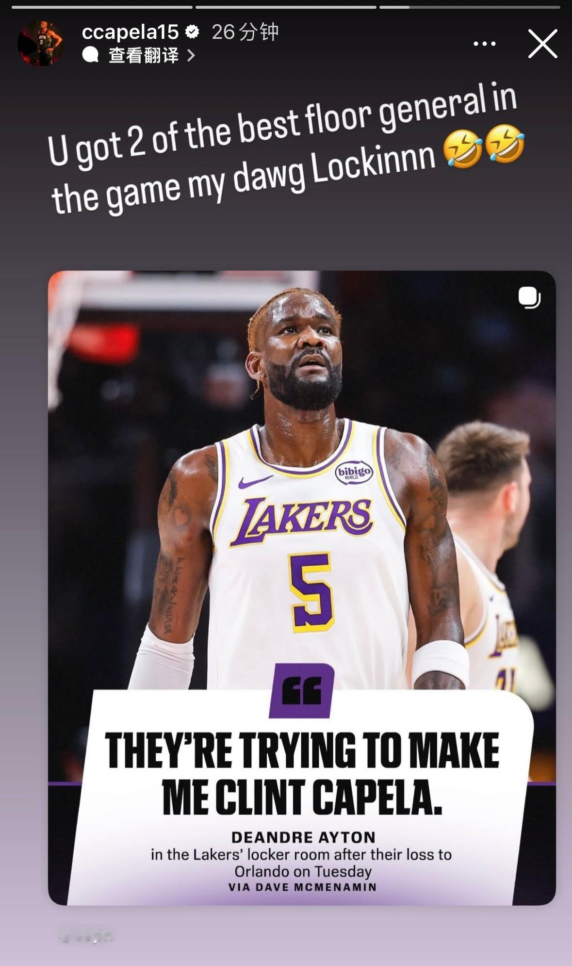 卡佩拉更新ins,调侃艾顿:兄弟,你身边可是有联盟里最顶尖的两位球场指挥官啊,稳住!😂😂