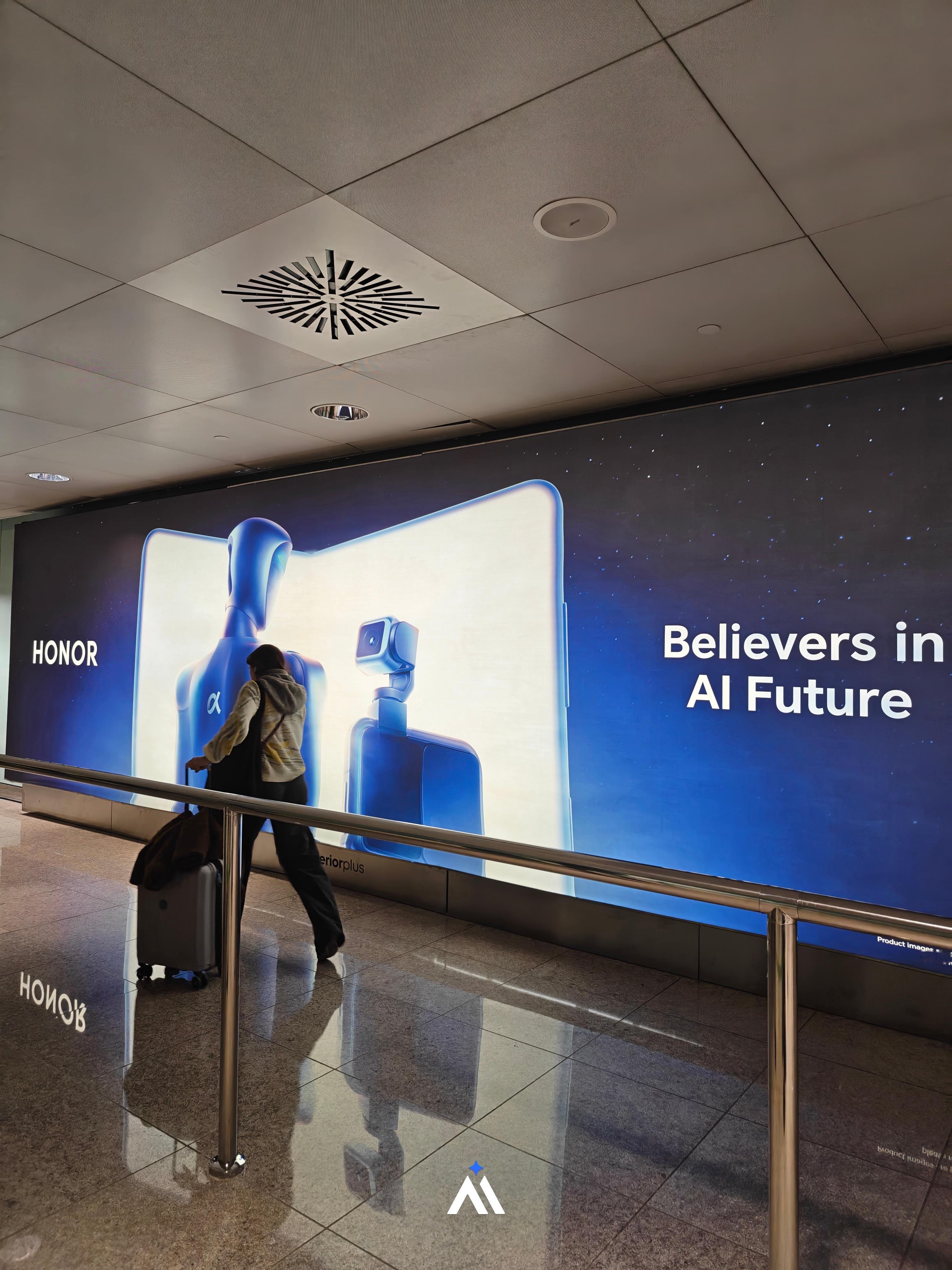 飞了13小时,过海关花了2小时,终于入境西班牙了下飞机第一眼就是荣耀的大幅广告 西班牙·巴塞罗那国际机场