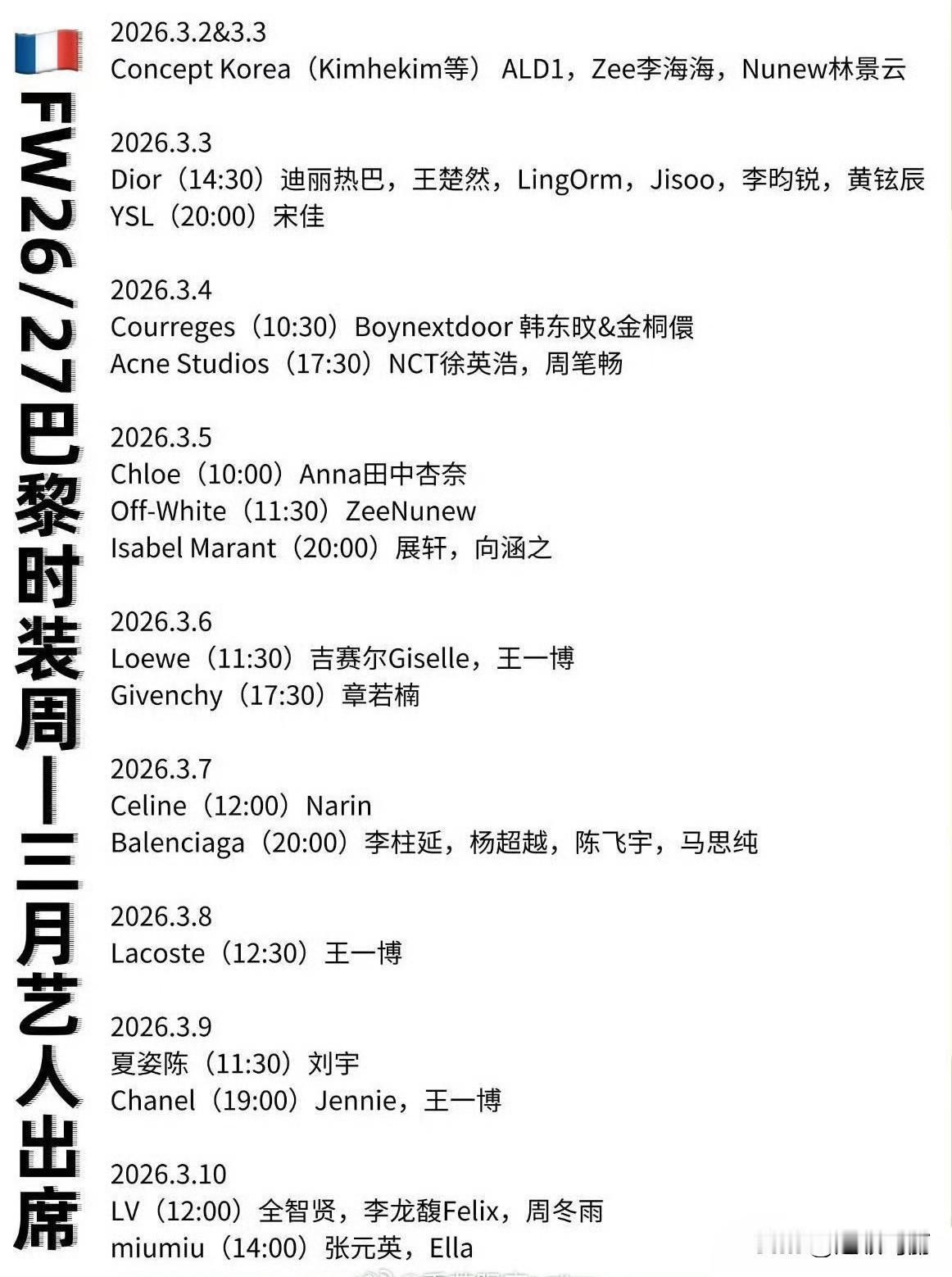 巴黎时装周出席艺人名单来了,好热闹啊