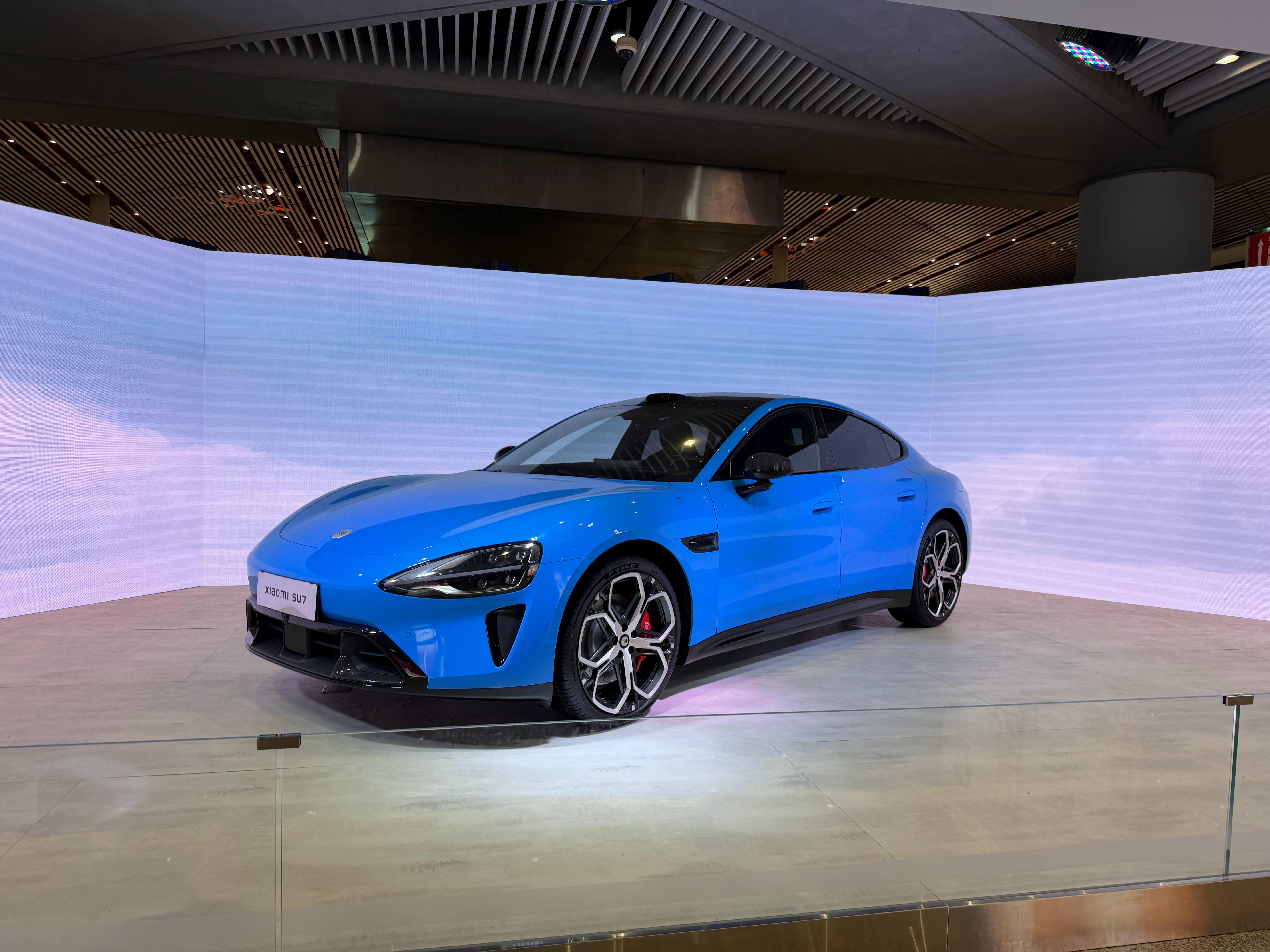 首都机场看到了全新一代的小米su7,蓝色真艳丽,前身是真好看~