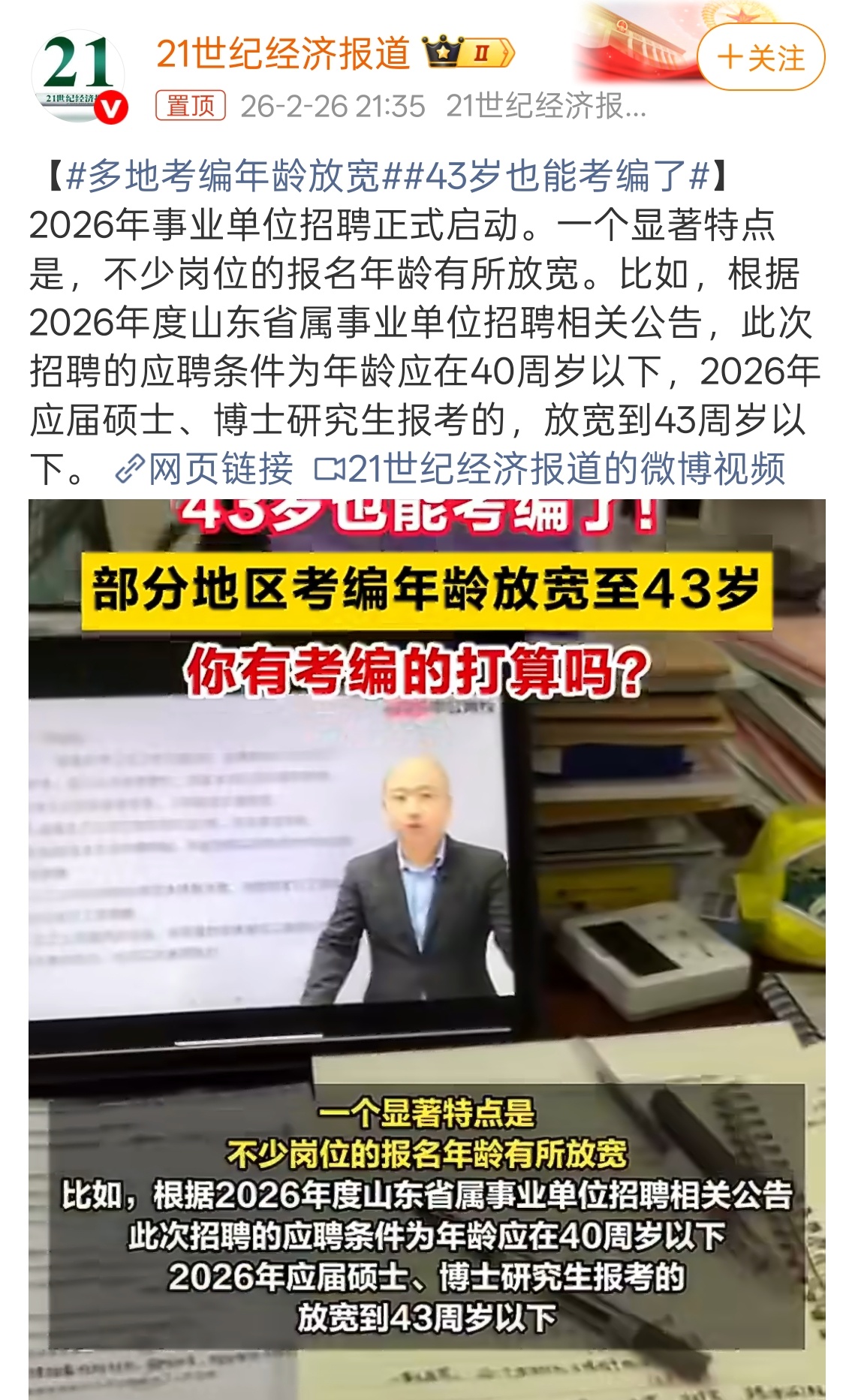 43岁也能考编了体制内的“真香”定律再次应验。本质上还是因为体制外的职场安全感太低了。一个43岁的人,如果在企业里,哪怕经验丰富,也可能因为“性价比”不如年轻人而被优化。但在体制内,43岁反而可能是经验丰富、年富力强的“黄金年龄”。
