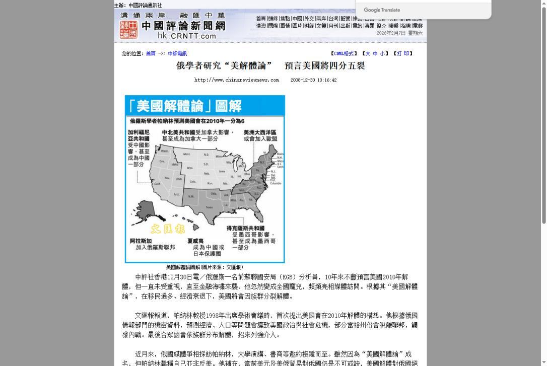 苏联式解体将重演?俄罗斯专家大胆预测:美国或将分裂成3个国家 现在的美国,除了中东局面,似乎没有什么能让这个国家团结起来了。也就是在美国内部撕裂日益严重的当下,一种关于“美利坚分崩离析”的声音再次甚嚣尘上,而且这次给出的时间表让人细思极恐。 相信大家都感觉到了,美国社会的戾气越来越重,红蓝州的对立简直到了水火不容的地步。就在这个时候,一位俄罗斯的老牌专家抛出了惊人预言:美国正在重演苏联式的解体剧本,而且很可能在2035年之前,这个超级大国就会分裂成三个独立的政治实体。 发表此番言论的是伊戈尔·帕纳林。此人的身份相当特殊,他不仅是俄罗斯外交学院的教授,更曾是克格勃的情报分析师。 因为,他亲眼见证过苏联从鼎盛到轰然倒塌的全过程,手里掌握着大国解体的第一手逻辑密码。 早在1998年奥地利的一场国际会议上,帕纳林就首次提出了美国分裂论,当时西方世界对此嗤之以鼻。 可到了2008年美国爆发金融危机时,他的理论一度被美国主流媒体疯传,因为那种摇摇欲坠的感觉,美国人自己也尝到了。 如今,帕纳林修正了他的模型,虽然把分裂的时间推迟到了2035年,但逻辑却更加犀利了。他认为美国正在经历的,正是当年苏联解体前的“历史镜像”。 最直接的导火索,就是经济发展的极度不平衡。大家都知道,苏联当年就是因为加盟国之间贫富差距太大,富裕地区不愿意一直给落后地区帮助,最后才闹分家的。 现在的美国何尝不是如此?东西海岸的富裕州,看着中部“铁锈地带”和南部农业州,眼里全是嫌弃。 就拿加利福尼亚州来说,这一个州的GDP就高达4.1万亿美元,放在全世界能排第四,比很多主权国家都富。 可是联邦政府的财政机制,却要通过税收把富裕州的钱转移支付给贫穷州。这种“劫富济贫”的操作,在经济好的时候还能忍,一旦经济下行,矛盾瞬间就会激化。 特朗普针对加州的种种政策,其实就被很多人解读为中央试图压制地方财权。当援助变成了怨恨,离心力自然就挡不住了。 更要命的是,美国现在面临着“两个美国”的价值观死局。这不仅仅是党争,而是文化上的彻底决裂。 当年苏联是因为民族和宗教差异导致撕裂,现在的美国则是被“红州”和“蓝州”劈成了两半。看看堕胎权之争就明白了,2022年联邦最高法院一推翻判例,红州立马立法禁止,蓝州则坚持用纳税人的钱资助摆脱困境。 同一个国家,法律在联邦层面竟然失效了,这在以前是敢想的吗? 还有那个永远无解的枪支问题。数据显示,美国平均每天有122人死于枪击,芝加哥这样的城市简直成了战场。 红州坚持拥枪是天赋人权,蓝州则高呼控枪保命。双方在最基本的生存权和自由权上都无法达成共识,这日子还怎么过? 在这种背景下,华盛顿的权威正在肉眼可见地丧失。以前美国是通过联邦政府的强力手腕控制各州,现在呢?得克萨斯州和加利福尼亚州这两个经济强州,动不动就跟白宫对着干。 在移民、环保、医疗这些关键议题上,地方州政府经常采取激进手段对抗华盛顿的政令。这像极了苏联晚期,加盟共和国纷纷要求自主权,最终架空了中央。 如果白宫连地方州都管不住,那离解体真的就不远了。 基于这些分析,帕纳林给出了那个让美国人背脊发凉的“新三国演义”蓝图。在他看来,未来的北美大陆将不再有一个统一的美利坚合众国,而是分裂为三个板块。 西海岸将形成“太平洋合众国”,以加州为核心,凭借科技和经济实力,转头拥抱亚洲市场;南部将变成“得克萨斯联邦”,守着制造业和能源,跟墨西哥打得火热;而中西部和东北部则组成“北美内陆联盟”,守着美国的老传统,和加拿大抱团取暖。 当然,站在旁观者的角度,我们也要对帕纳林的预测保持一份理性。毕竟他曾是克格勃的人,看美国难免戴着“有色眼镜”,多少有点主观唱衰的意思。 而且他1998年预测美国2010年分裂,事实证明也并没有发生,美国通过转嫁危机硬是挺过来了。这说明这个庞大的帝国,还是有一定的韧性的,并不会像纸房子一样说塌就塌。 还有一个最关键的阻碍,那就是“政权”的问题。苏联解体时,很多加盟共和国手里是有兵权的,具备独立的硬实力。 但美国不一样,美军的高度统一是联邦政府最后的底牌。各州的国民警卫队虽然名义上属于州,但真到了关键时刻,指挥权还是在联邦手里。 目前的独立呼声,更多还是停留在政客的嘴炮和“笔杆子”上,只要军队不乱,实质性的武装割据就很难发生。 不过,虽然武装分裂的可能性暂时不大,但美国内部确实是十分的分裂。 帕纳林的预测或许激进,但却精准地戳中了美国的痛处。如今美国政坛的混乱局面还在持续,如果不能解决内部的贫富悬殊和价值观撕裂,就算地图上没有画出三条线,人心里的那三条线恐怕早就画好了。