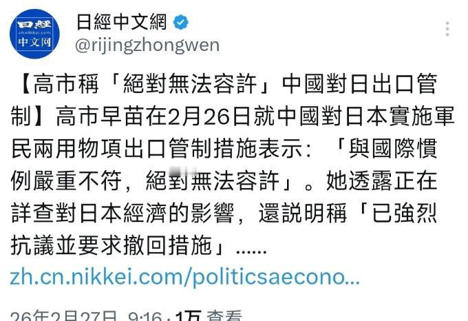 愤怒的首相!高市早苗直呼无法接受,可事情有因有果,日本落得如今这个下场,跟高市早苗的“逆天”操作有着很大关系,可以这么说,日本右翼的思想大概率会将日本带到被“清算”的境地。 首先咱们要清楚一件事情,那便是高市早苗不止一次想参拜“靖国神社”,或许是迫于中日矛盾的压力,这个女人迟迟没有亲自去“拜鬼”。 如今中日两国因为台湾问题而局势紧张,随着中方加强对“两用物项”的管制后,不少日本军工企业受到了“制裁”,这让高市早苗难以接受这个结果。 其实说白了,中方希望和各个国家和平相处,但在原则问题上,咱们不会有讨价还价的余地。 可以这么说,若是日本政府撤回错误的“涉台言论”,那中日关系还有可能缓和,若是日本坚持这种态度,那中方很可能会对日本“新账旧账”一起算。