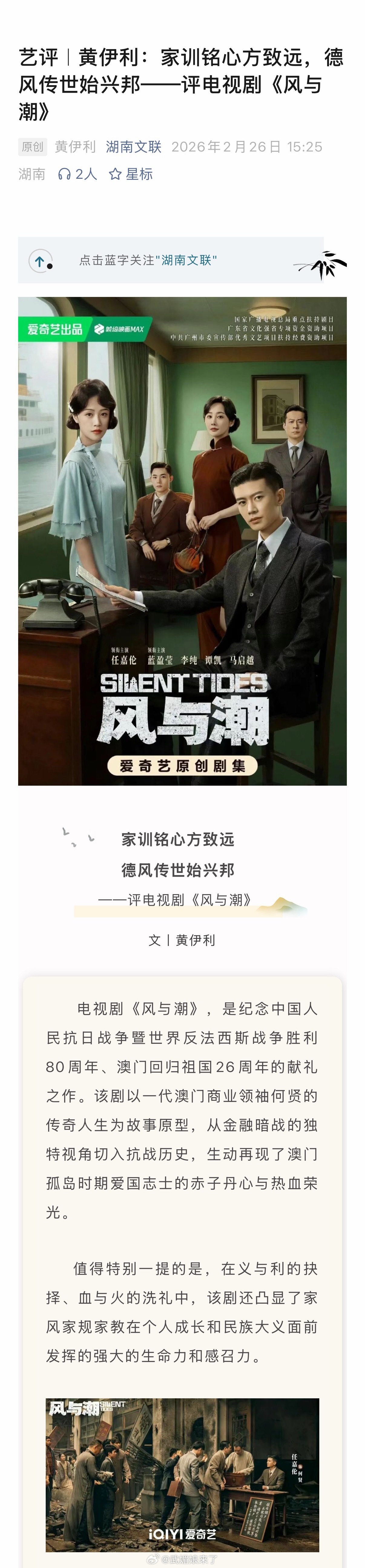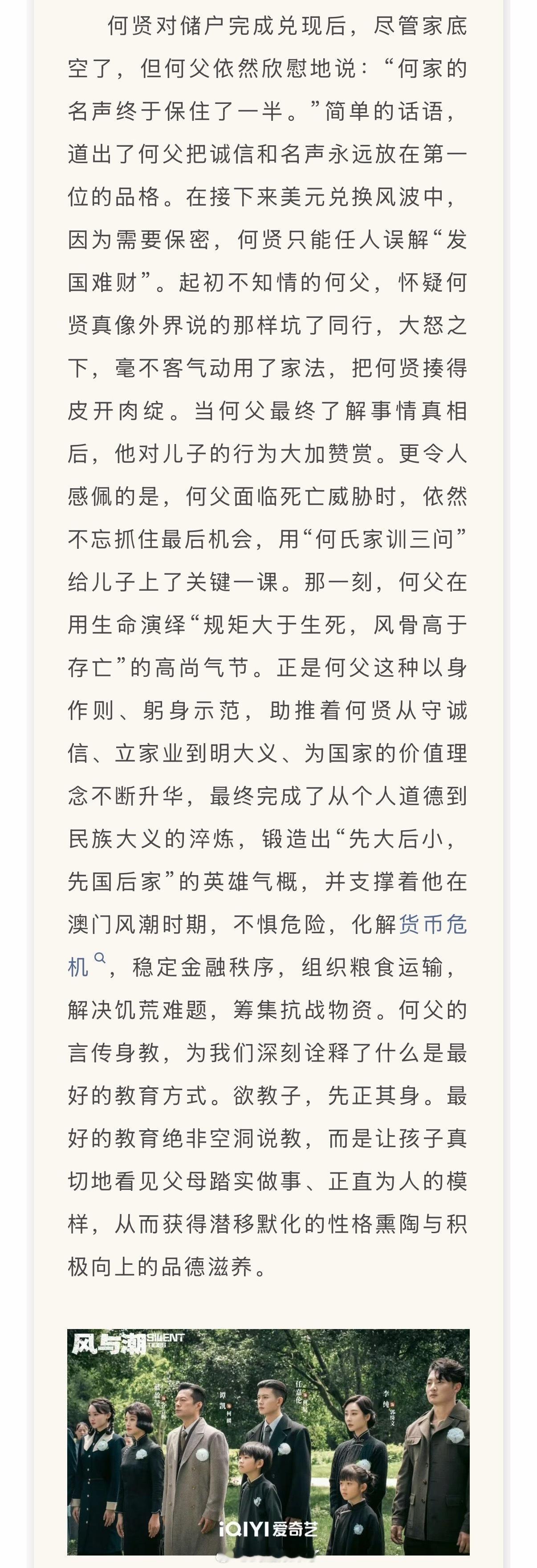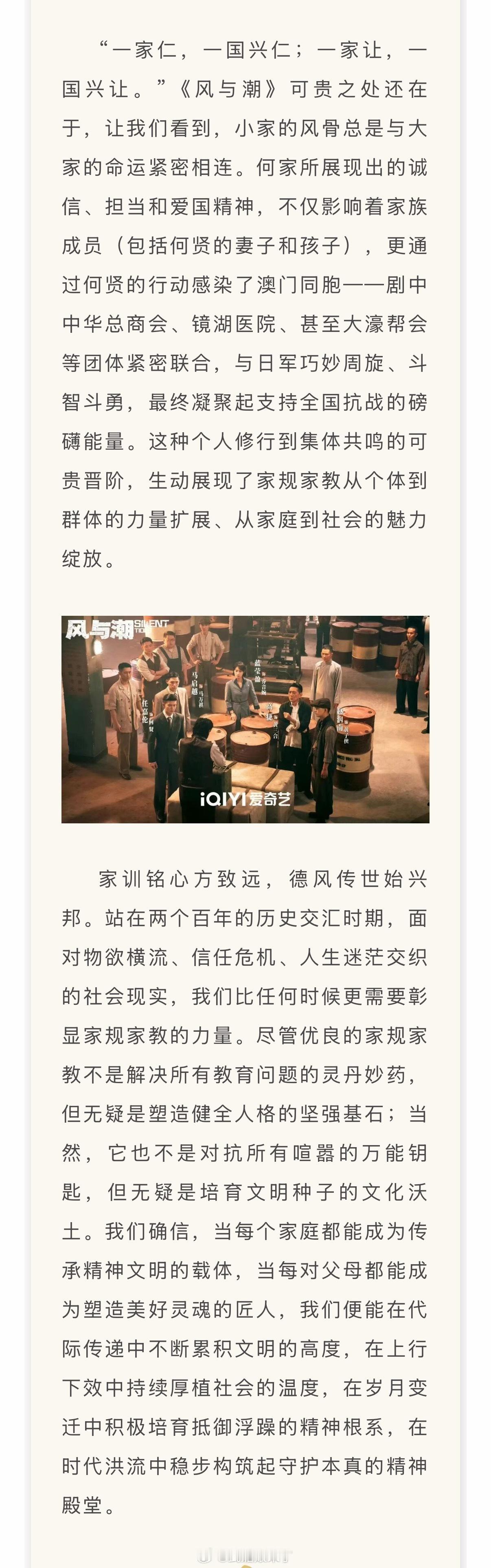 官媒再评任嘉伦《风与潮》家训铭心方致远,德风传世始兴邦