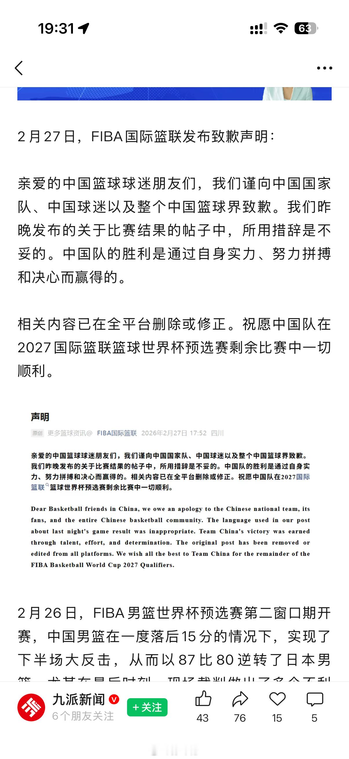 国际篮联想干嘛?!昨天赛后世界杯社交媒体官方账号写道:“冲绳神剧本!中国男篮从日本偷走一场胜利。”(China with a sneaky win over Japan),“Sneaky”一词隐含“鬼祟、卑鄙”的贬义FIBA国际篮联向中国男篮致歉中国男篮vs日本男篮 深圳·深航假日名居