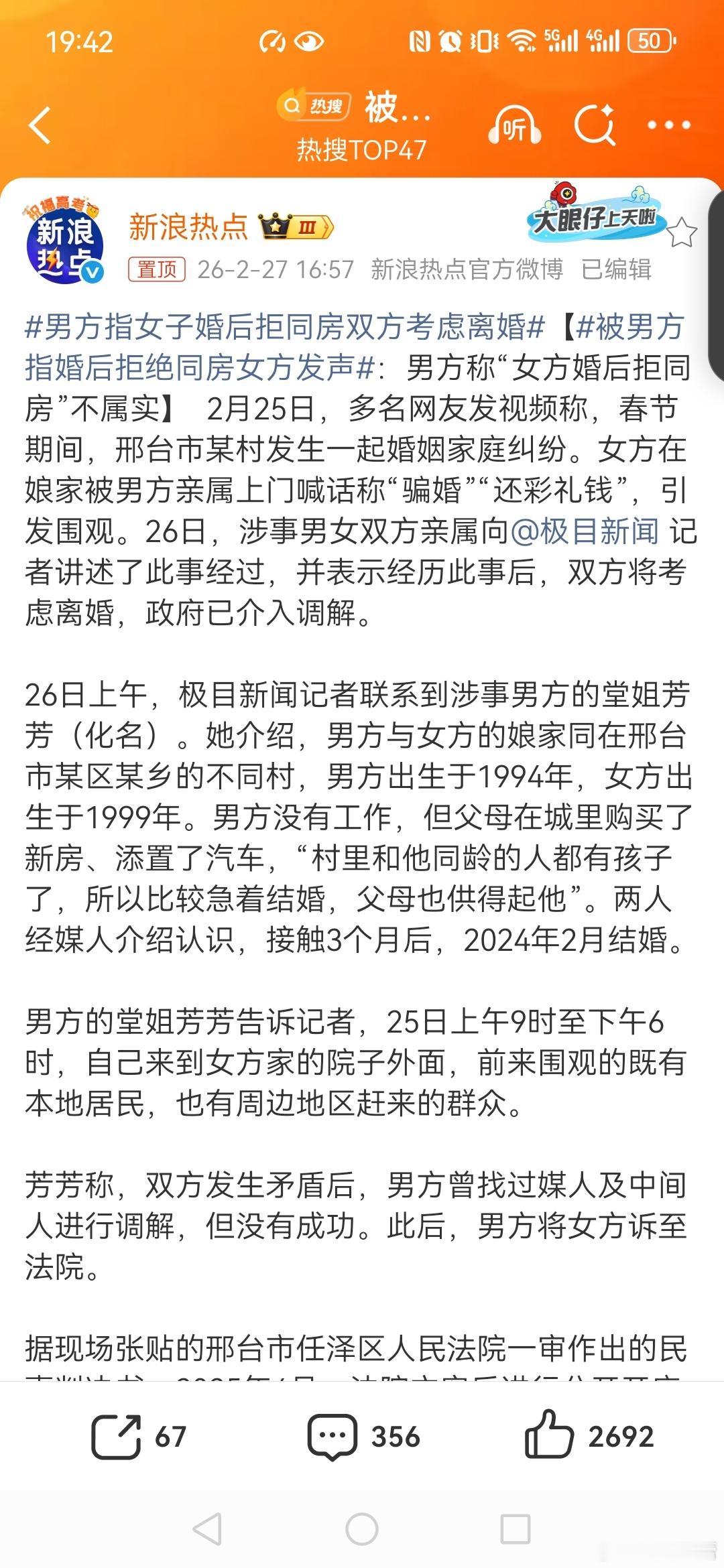 男方指女子婚后拒同房双方考虑离婚【被男方指婚后拒绝同房女方发声其实男方做一切的目的就是想让女方退彩礼,退钱,把损失减少到最小。但男方的所作所为确实从法律上来说不妥,我要是女方,男方闹一次,把彩礼都退了,协商离婚了,不会发生到如此,