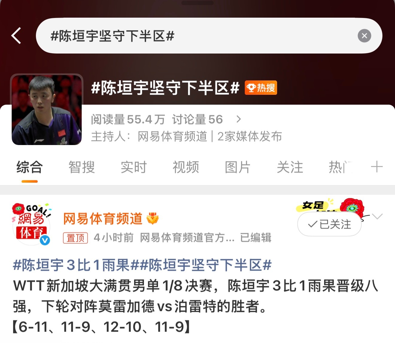 出大事是指单打和双打都输给早田吗老蒯