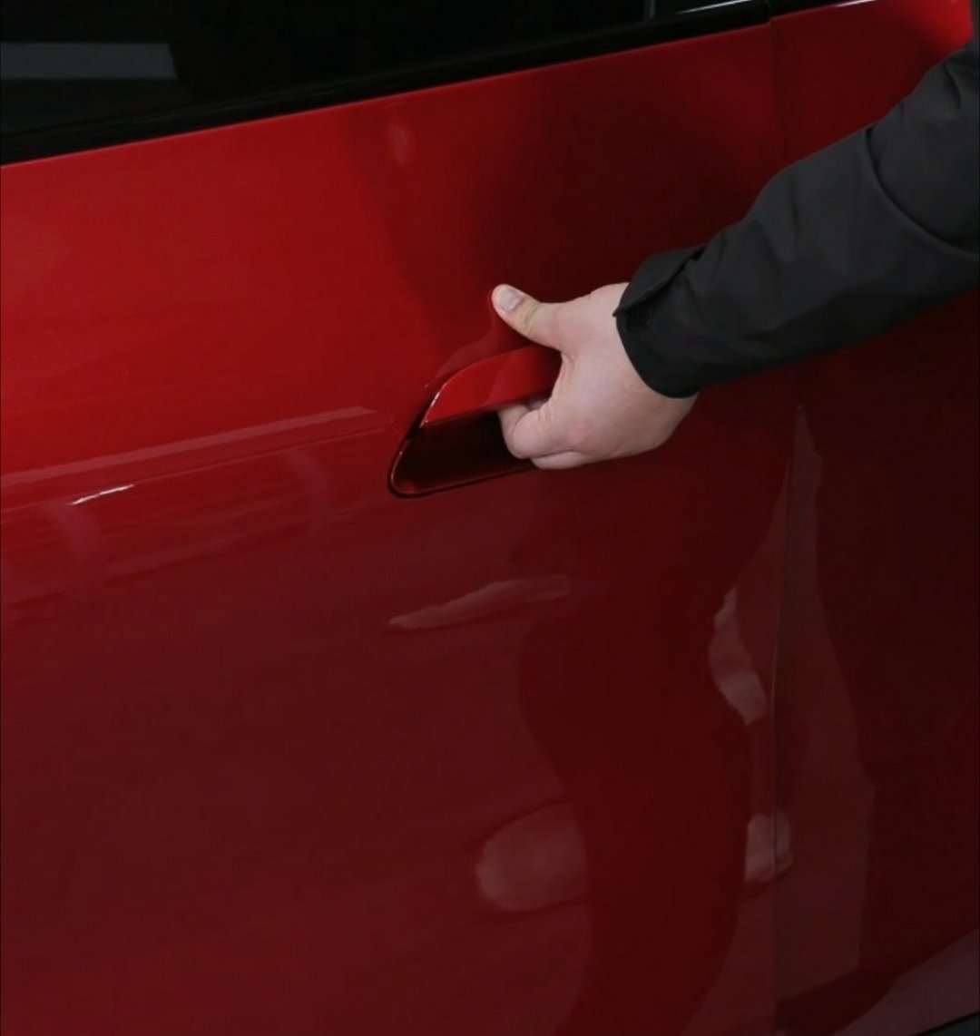 除了上一代的门锁微动开关,新一代 SU7 增加了外侧机械门把手,可以看到门把手部分是可以拉出来的。