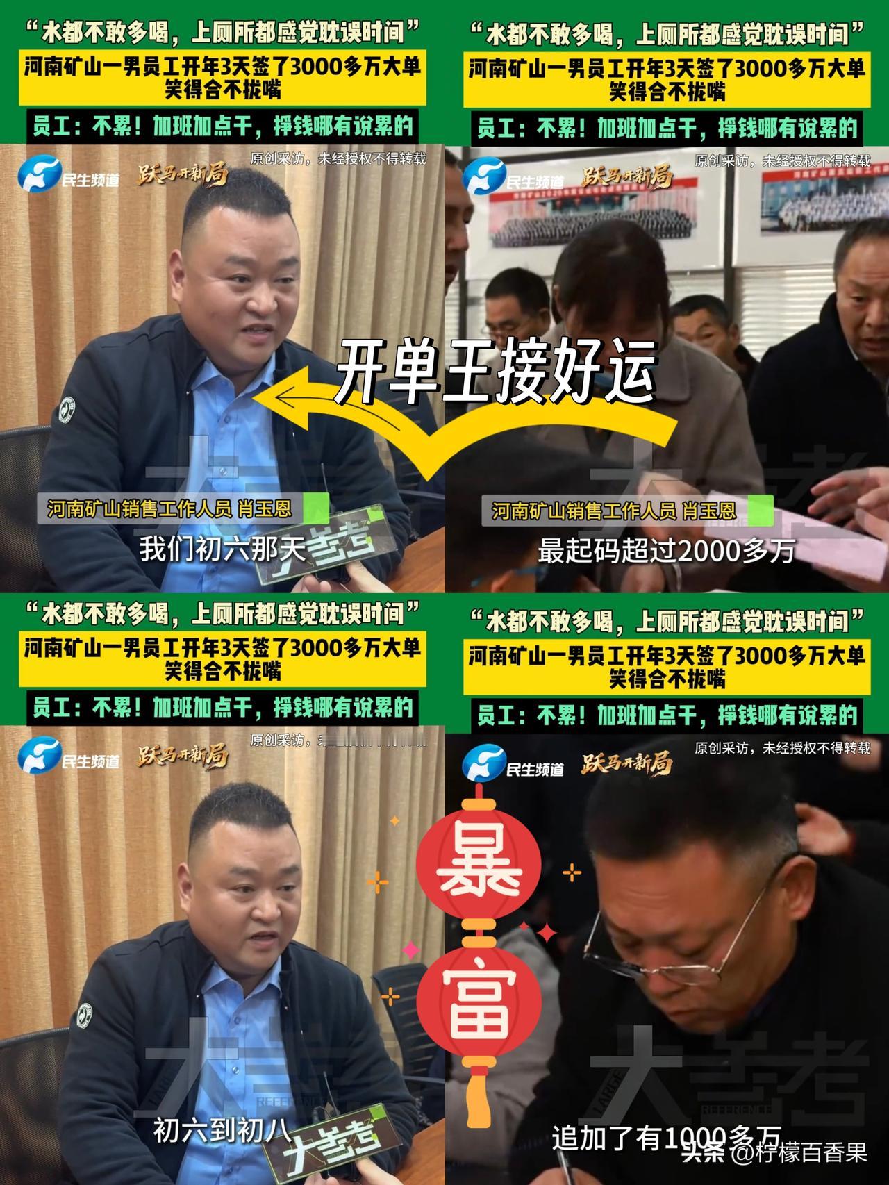 开工3天签3000万,这才是真正的“开年王炸”啊! 真的要被河南矿山这位大哥狠狠羡慕到了! 别人刚从春节假期的被窝里爬起来,还在对着电脑发呆,人家开工3天,直接干成了3000多万的大单! 初六当天就拿下2000万的出口订单,后面又追加了1000多万,这业绩,简直是开年就把KPI焊死在天花板上了! 最让我破防的是他说的那句:“水都不敢多喝,上厕所都感觉耽误时间。” 为了签单,连水都不敢多喝,饿了啃面包,困了趴桌睡,三天辗转好几个城市,方案改了又改。 当被问到累不累的时候,他笑着说:“不累!挣钱哪有说累的!” 这股子拼劲,真的又让人佩服又羡慕。 想想自己开工还在摸鱼,人家已经把真金白银揣进兜里了。这3000万,哪里是订单啊,分明是人家用汗水和努力堆出来的底气! 2026年,真的太想沾沾这位大哥的喜气了! 希望新的一年,我们也能像他一样,付出的每一份努力,都能变成实打实的回报! 互动:评论区接好运!2026年祝我们都能搞到大钱!