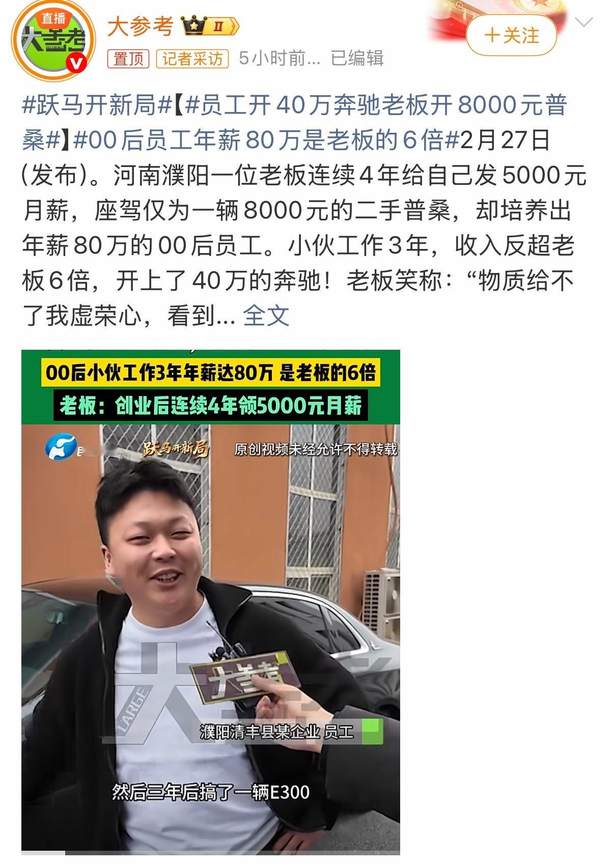 00后员工年薪80万是老板的6倍员工开40万奔驰老板开8000元普桑
